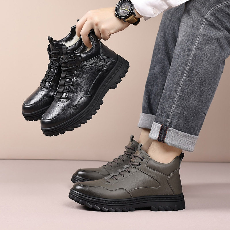 户外运动舒适休闲鞋 加厚加绒保暖棉鞋 雪地靴 男子高帮鞋 斯凯奇冬季
