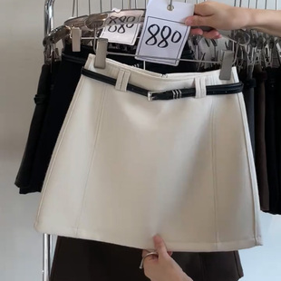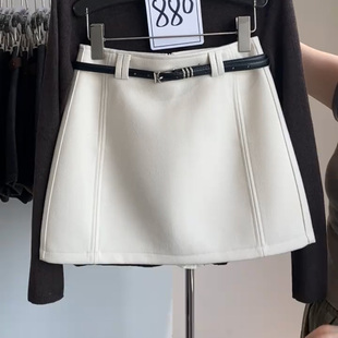 洋气咖色半身裙女秋冬显瘦遮胯高腰A字百搭防走光包臀毛呢短裙子