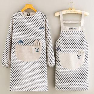 可爱帆布长袖 耐磨工作服女 围裙家用厨房做饭防污透气罩衣大人时尚