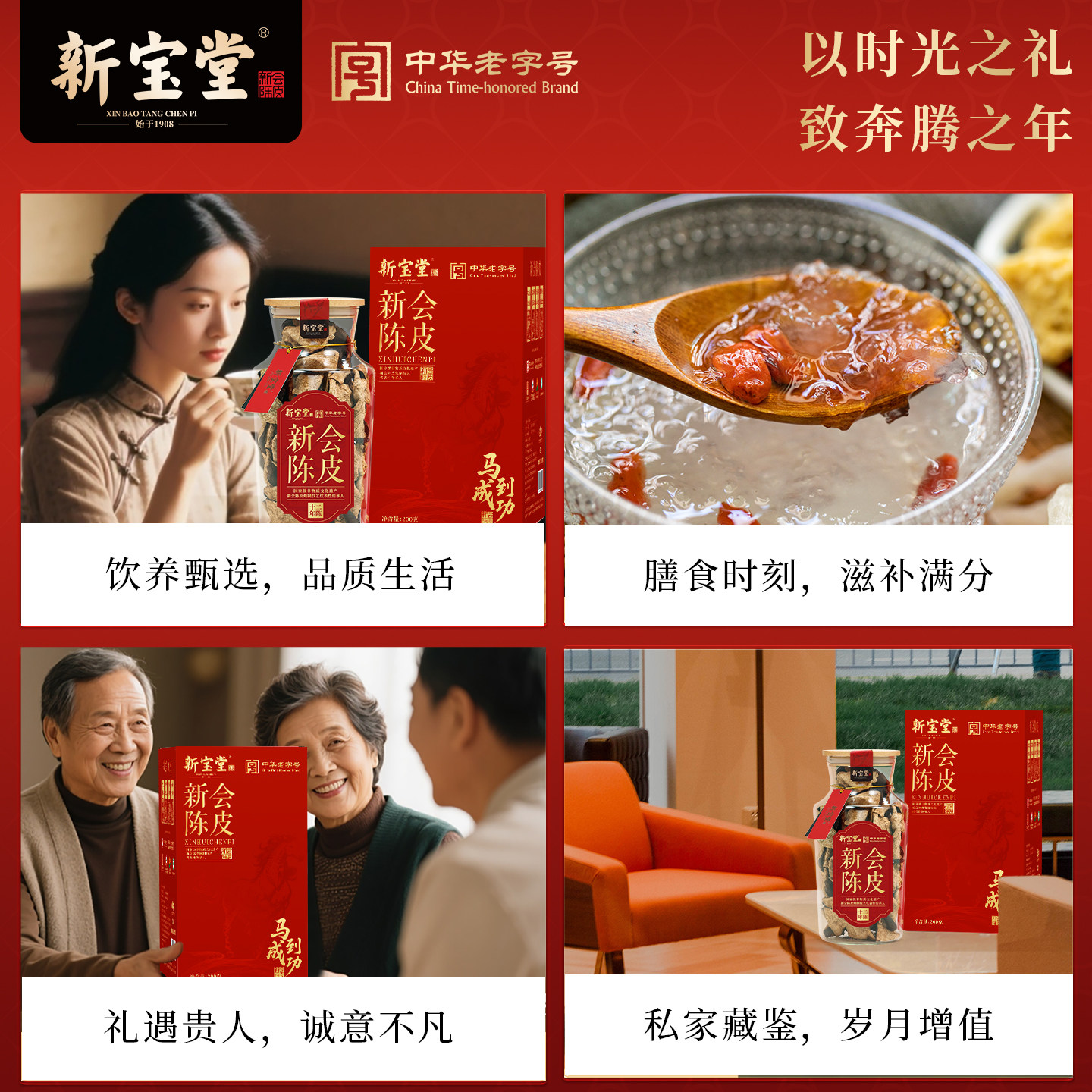 新宝堂陈皮官方旗舰店十二年新会陈皮马到成功马年礼盒200克