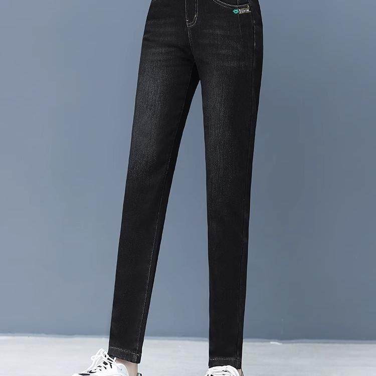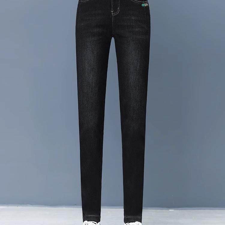 神级百搭 版 加绒牛仔裤 子女高腰弹力修身 过冬小脚裤 铅笔裤 经典