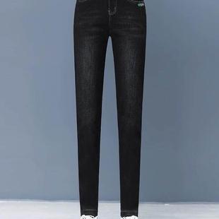裤 四面弹高腰显瘦烟管裤 2025新款 女冬季 子秋冬 加厚加绒直筒牛仔裤