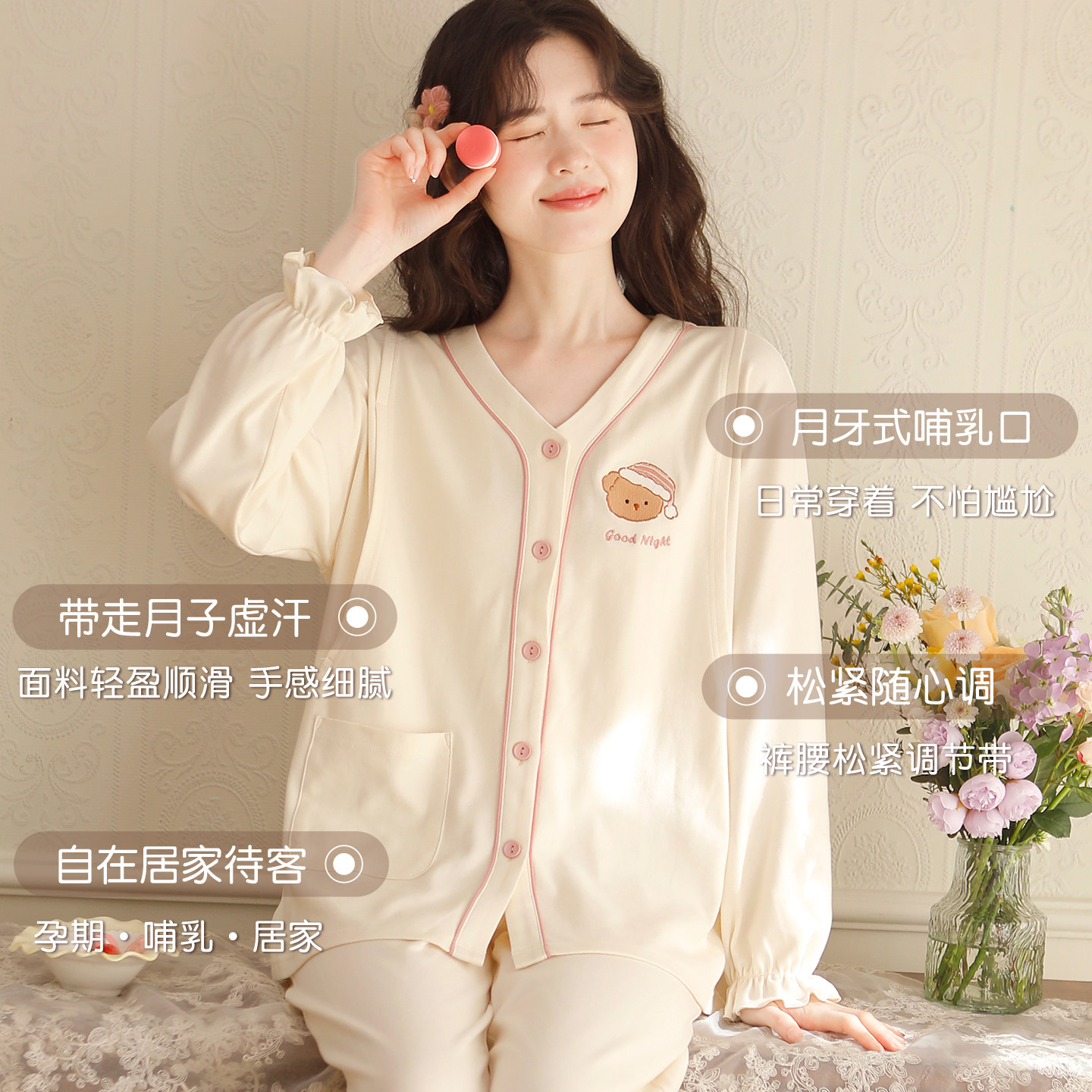 富朵春秋月子服纯棉产后秋冬季 孕妇哺乳睡衣喂奶怀孕期产妇家居服