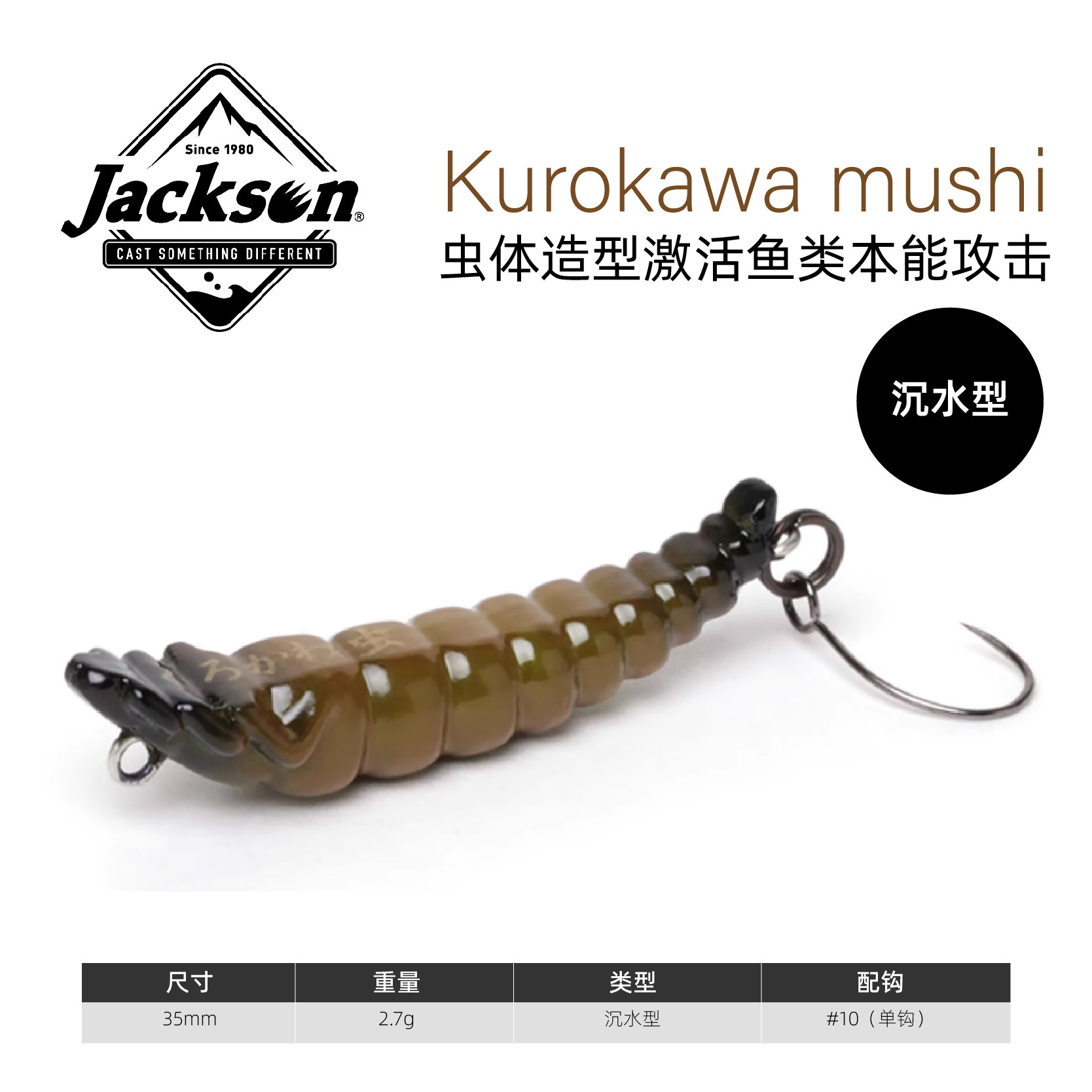 日本Jackson黑川虫Kurokawamushi路亚饵假饵溪流仿生沉水虹鳟鲈鱼