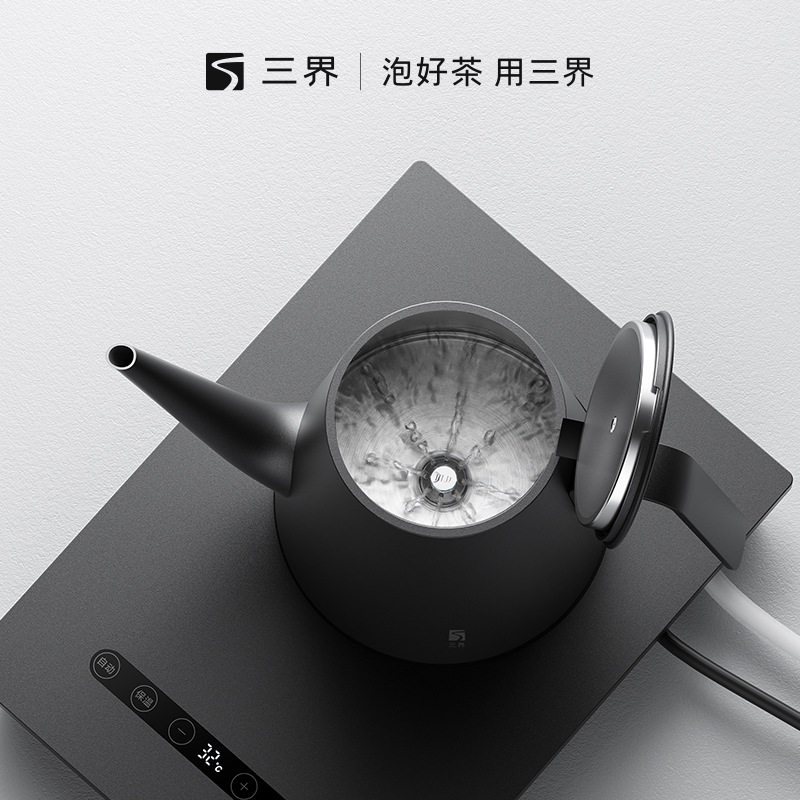 三界茶具妙控电热水壶嵌入式 底部上水保温烧水壶泡茶专用茶盘套装