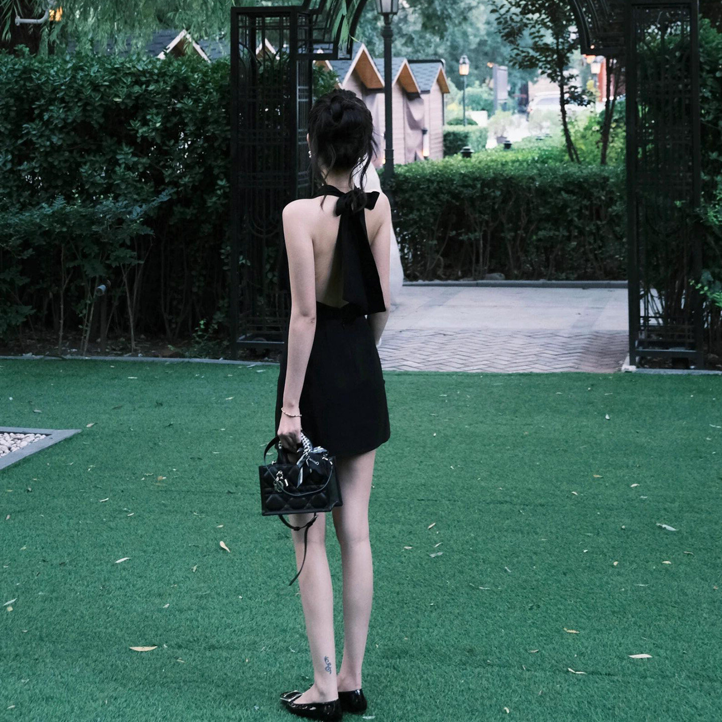 辣妹性感挂脖露背连衣裙女2026新款 显瘦黑色包臀短裙 年会礼服修身