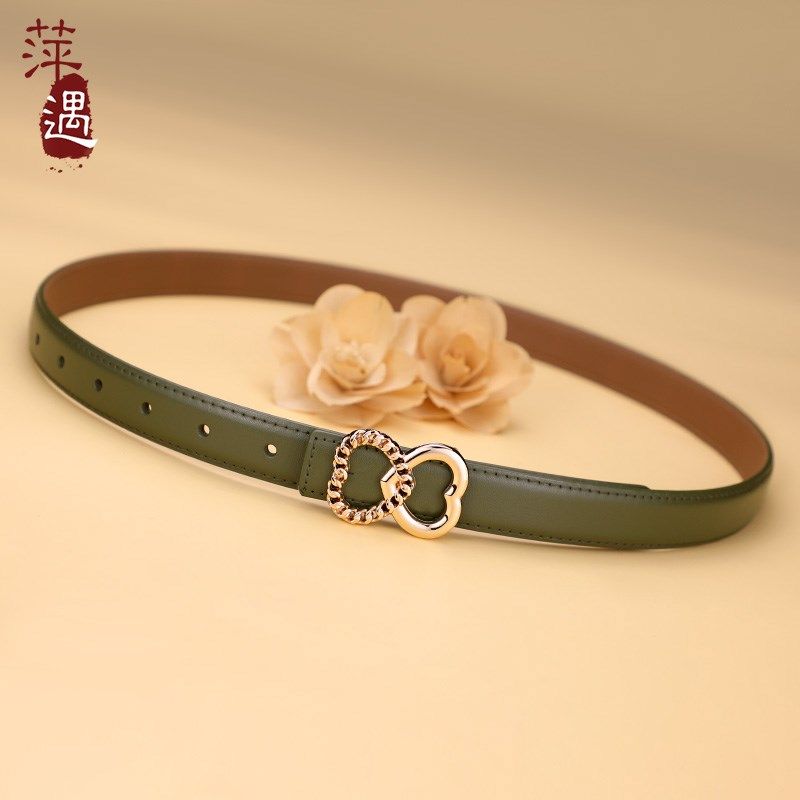 饰配裙收腰牛仔裤 百搭宽腰带装 带 个性 皮带女真皮牛皮绿色潮流时尚
