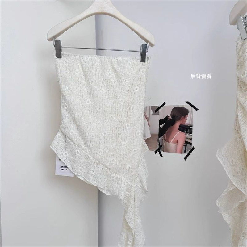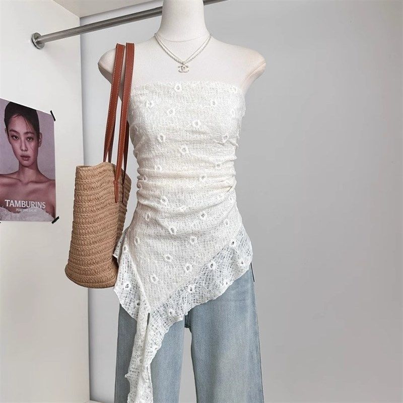 背心 不规则别致小衫 荷叶边一字肩抹胸上衣女2025夏新款 度假风修身