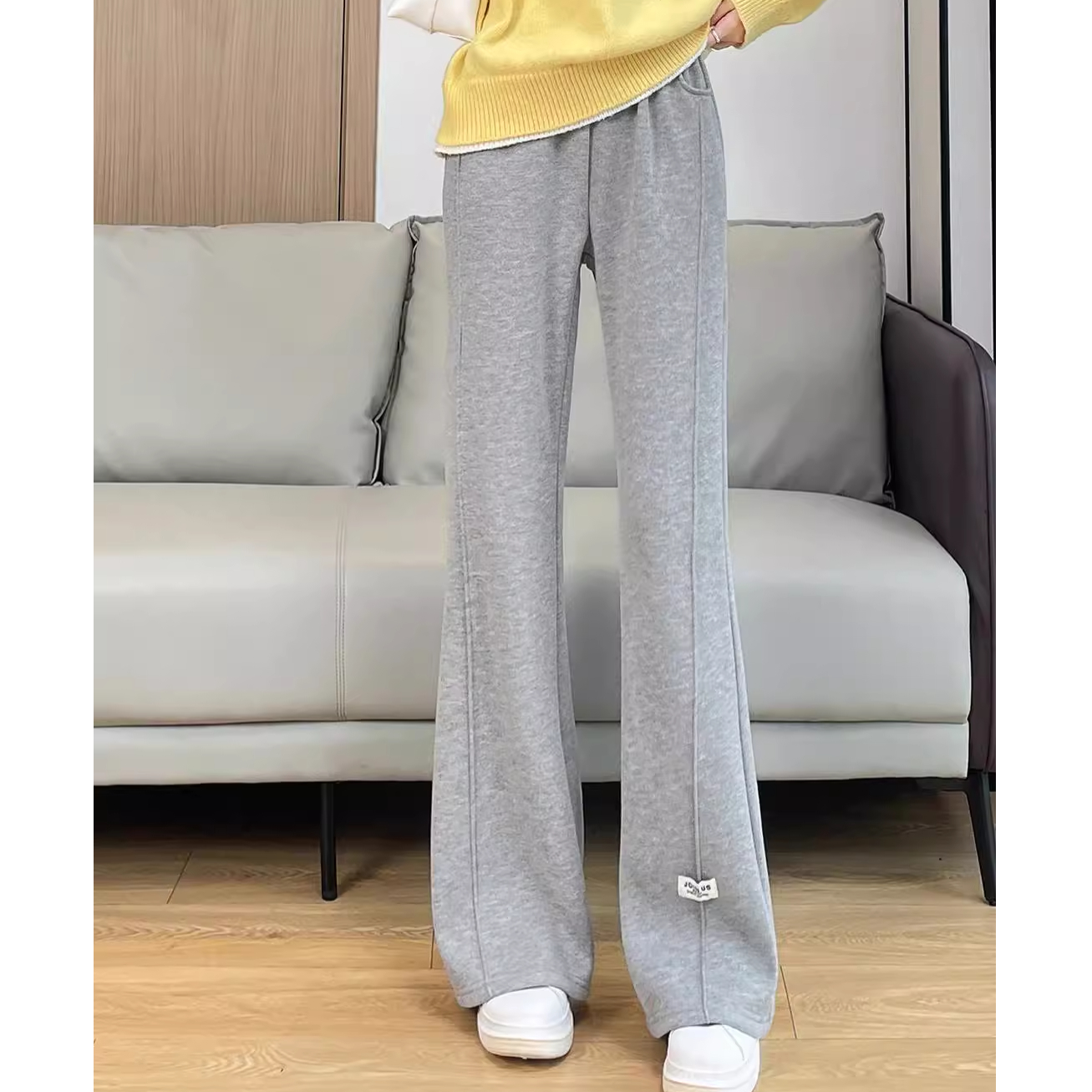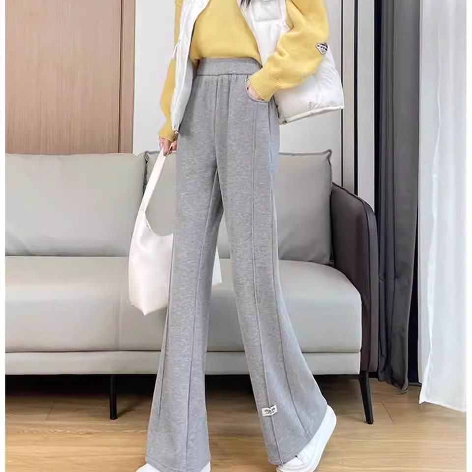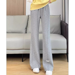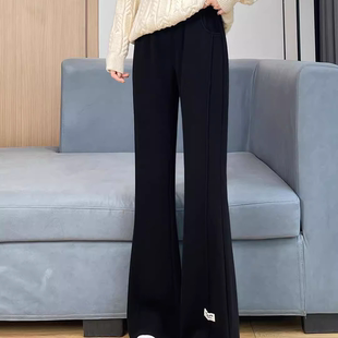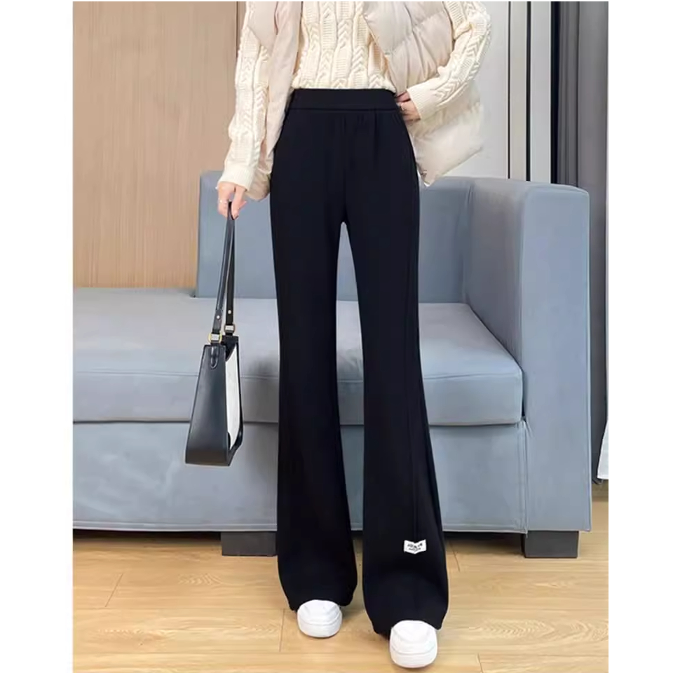 松紧腰设计垂感纯色休闲喇叭裤 新款 加绒加厚百搭简约微喇长裤 冬装