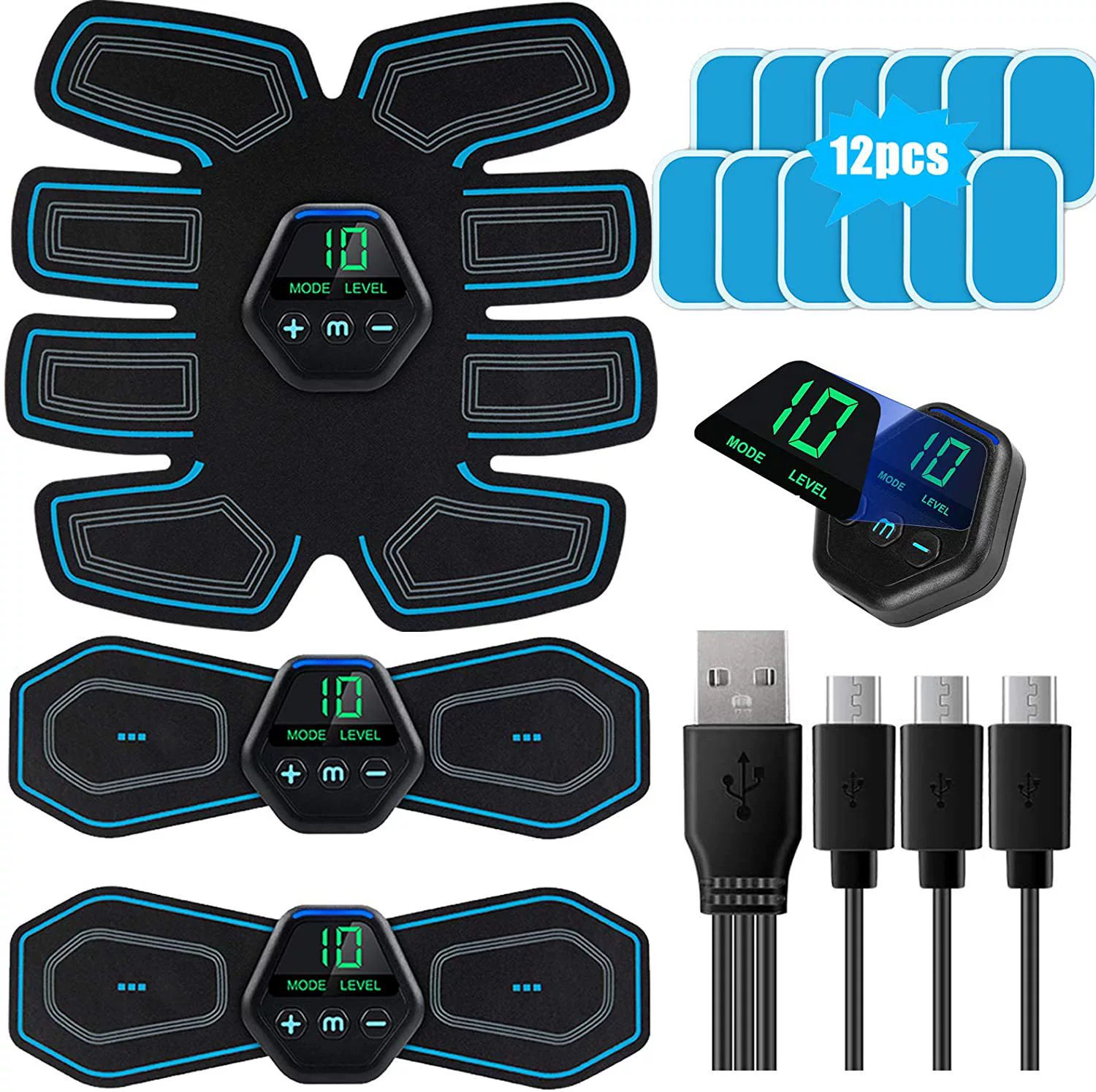 肌肉刺激器液晶屏ABS电动腹肌贴 EMS腹部肌肉贴 USB充电 510K FDA