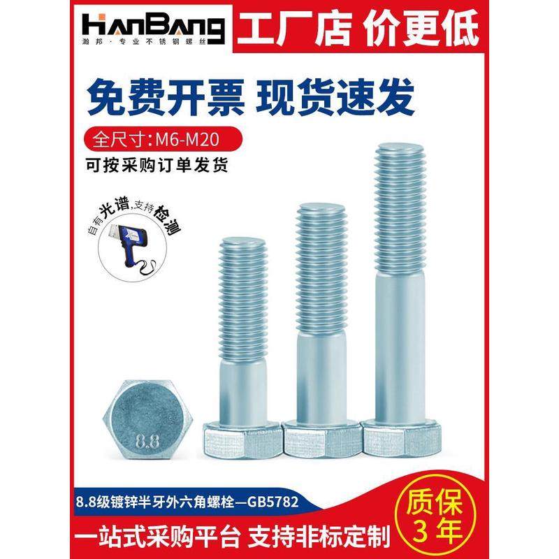 8.8级镀锌外六角半牙螺纹螺丝高强度螺栓GB5782M6M8M10M12M16M2