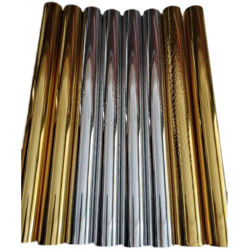 进口皮革烫金纸PVC吸塑膜铜板纸PU牛皮电化铝120米长台湾南亚咖啡底金色银色哑金哑银玫瑰金红蓝绿黑色金箔纸