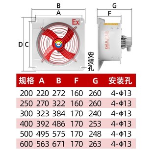 防爆轴流风机BFAG 400换气方形排风扇380VP工业隔爆型风机220 300
