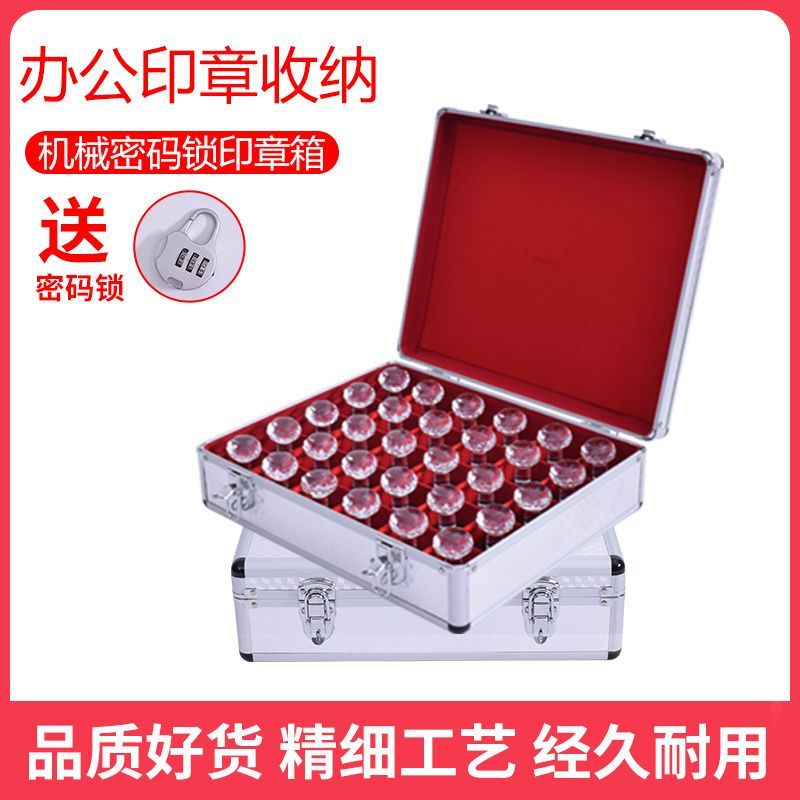 大号公章盒子收纳盒铝合金手提多功能财务印鉴章印章箱30格20挂锁
