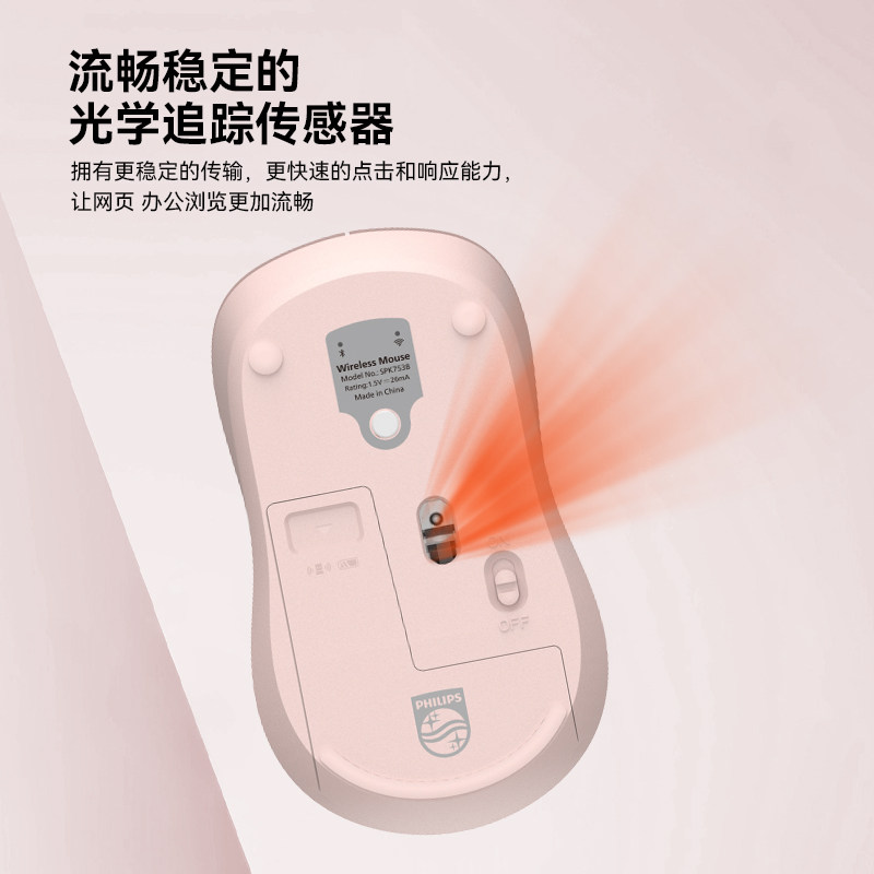 飞利浦无线鼠标蓝牙人体工学办公专用笔记本轻音安静电脑鼠标滑鼠