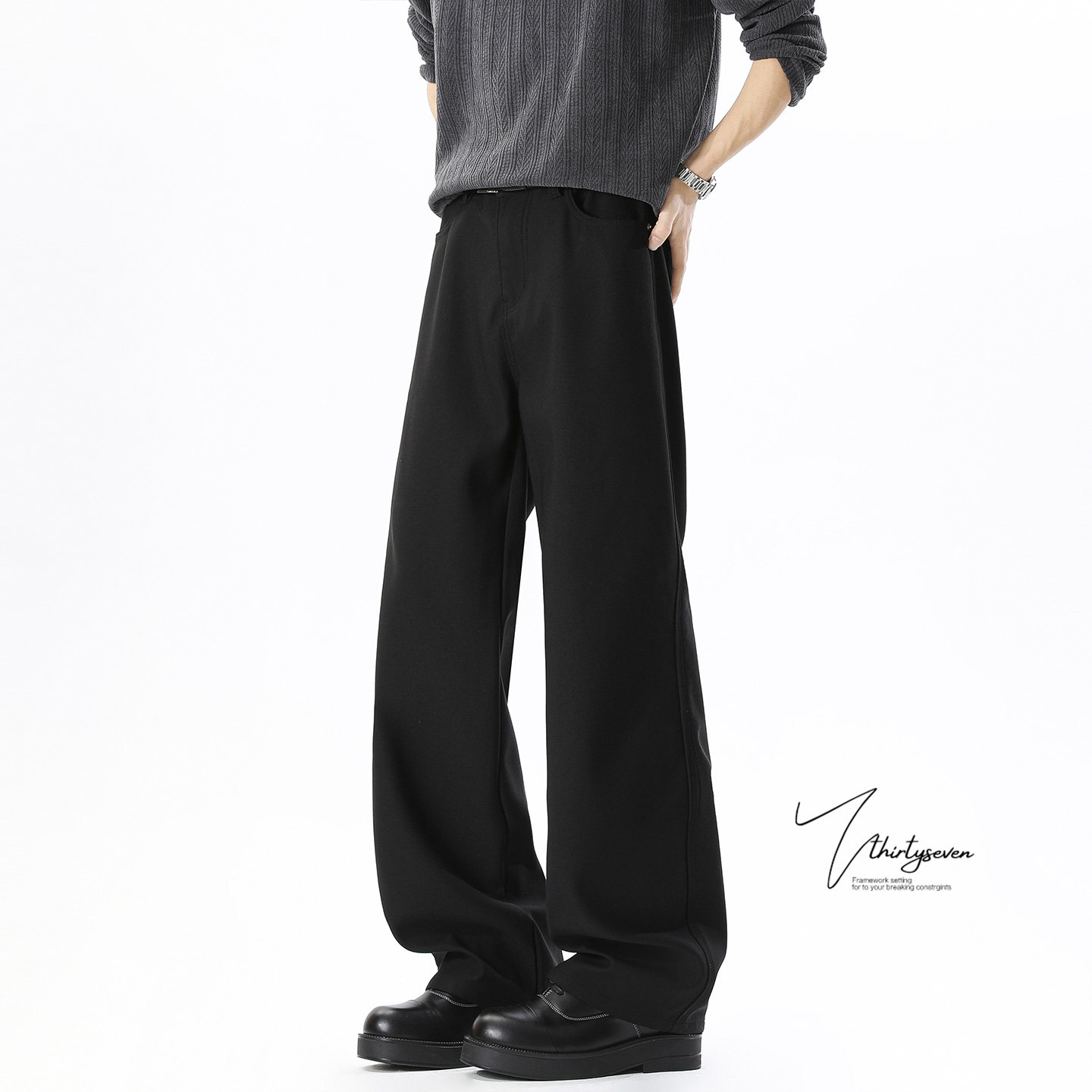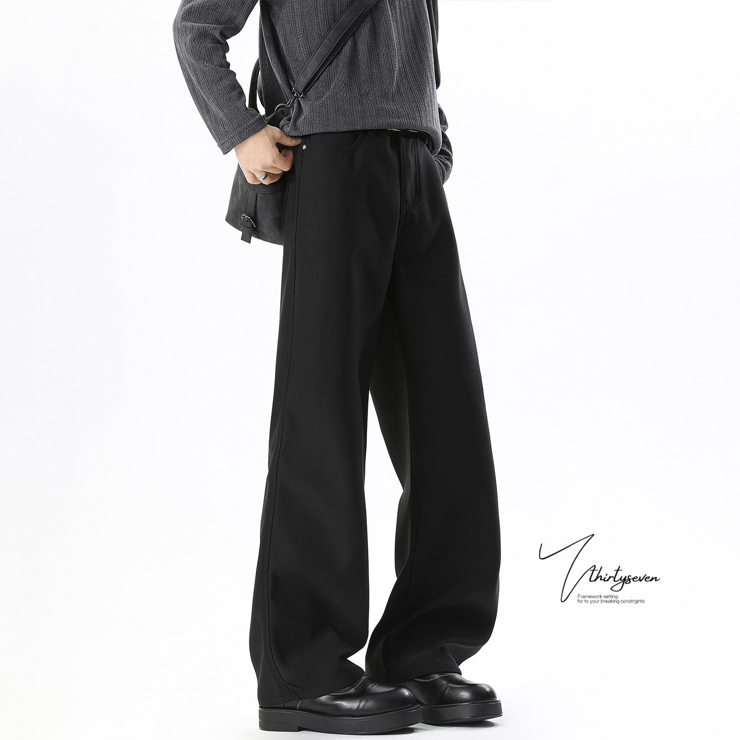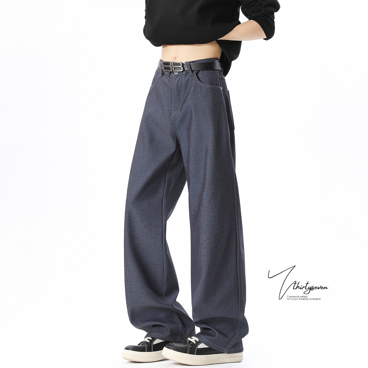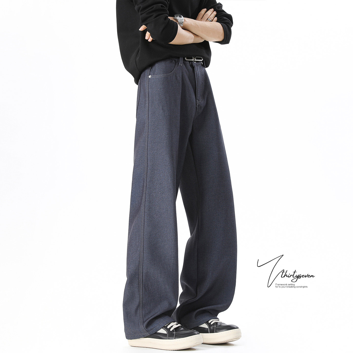 简约cleanfit宽松垂感阔腿通勤长裤 男春季 潮牌弯刀牛仔裤 V37美式