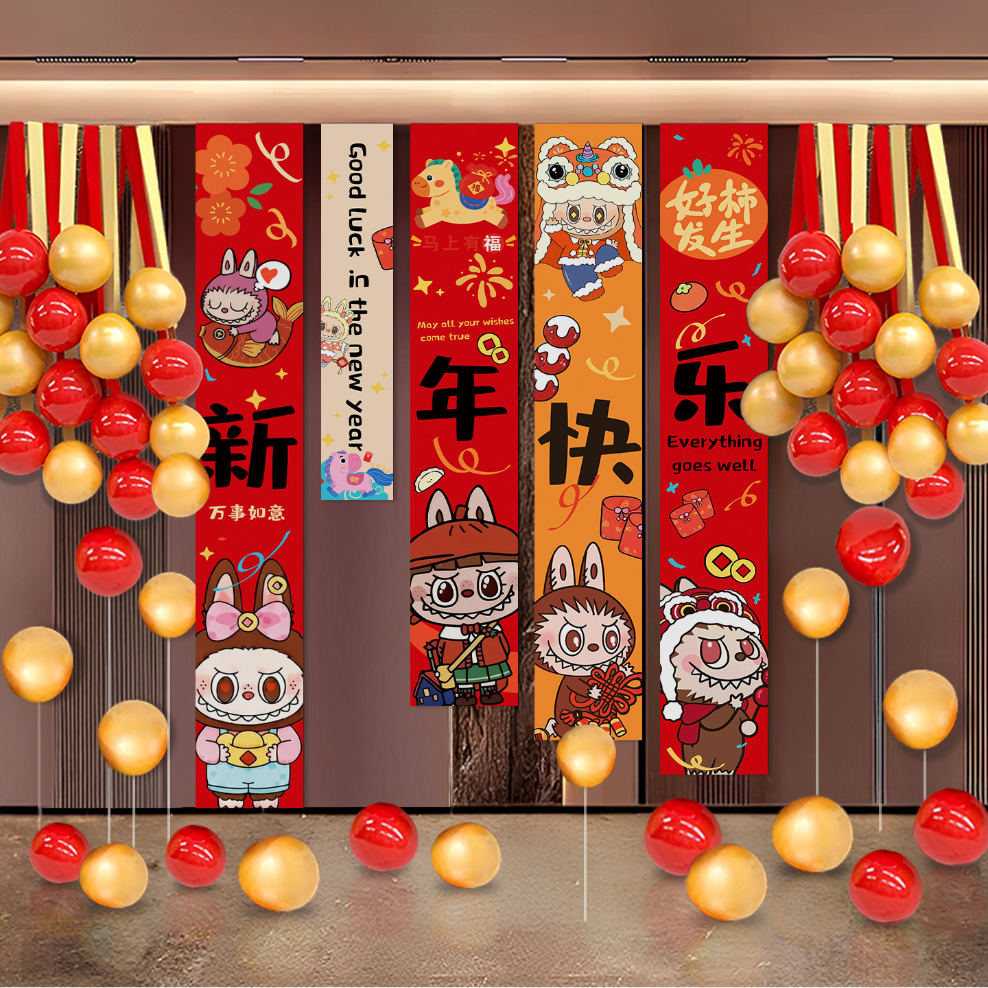 2026元 饰品教室氛围场景布置 旦新年春节学校幼儿园爱心气球挂布装