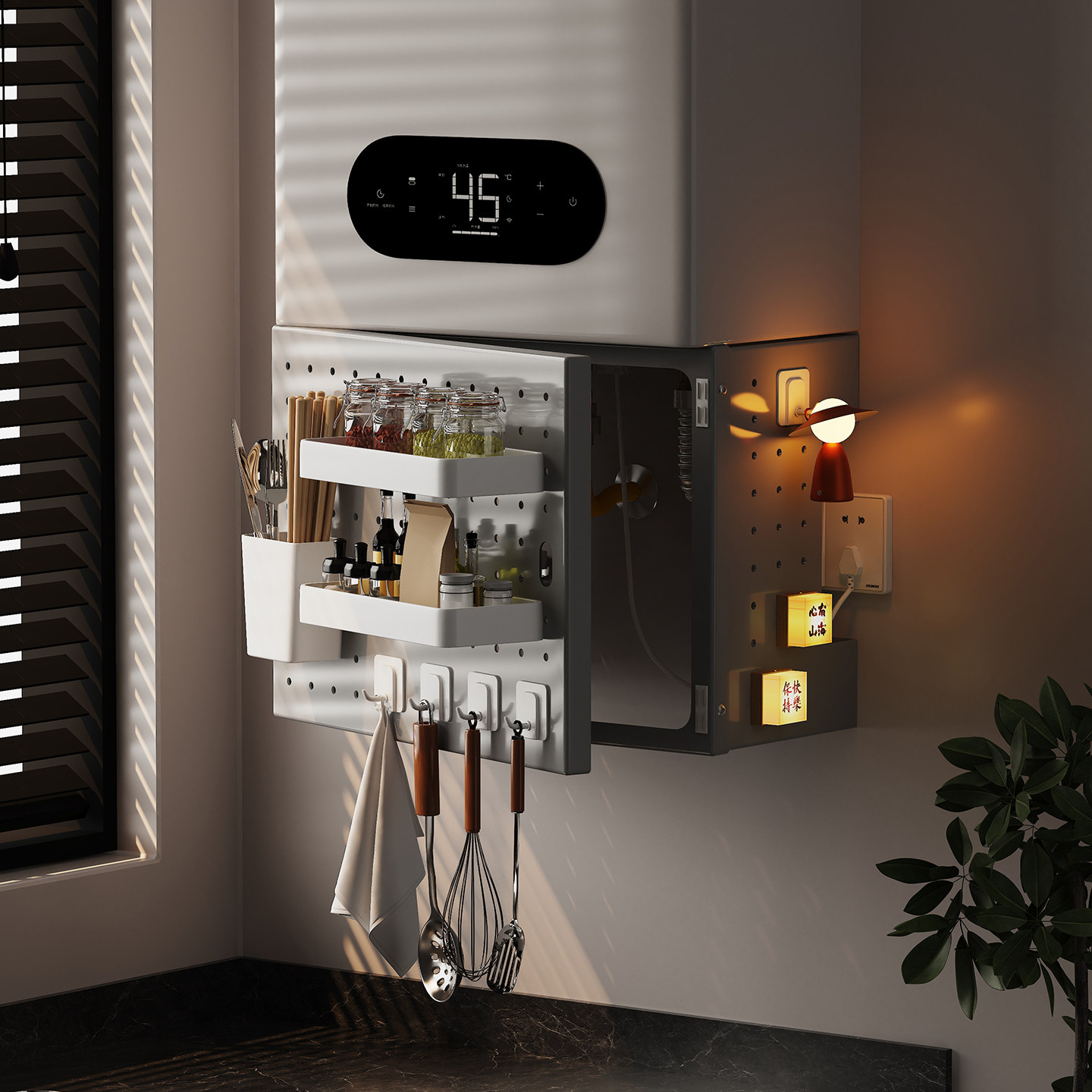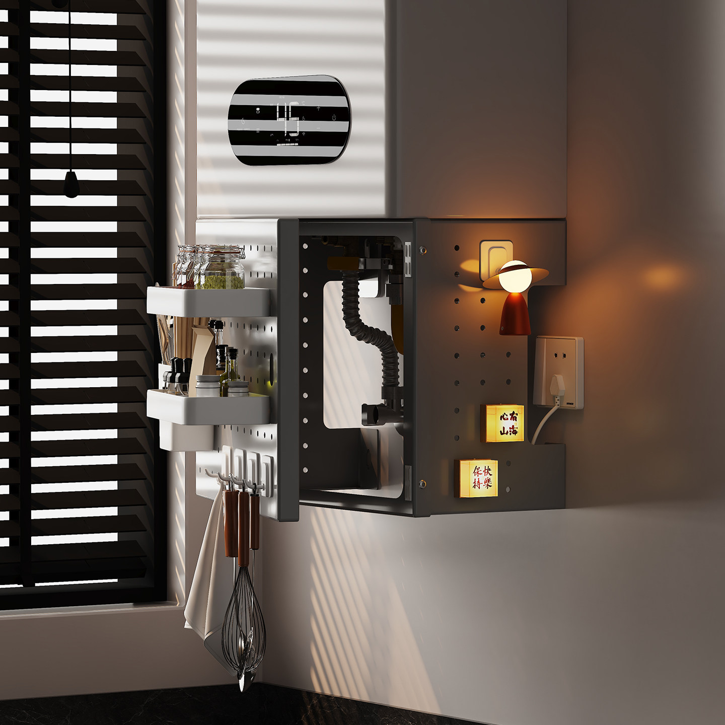 热水器遮挡罩开门洞洞板燃气管道装 饰遮挡管线遮丑挡板厨房置物架