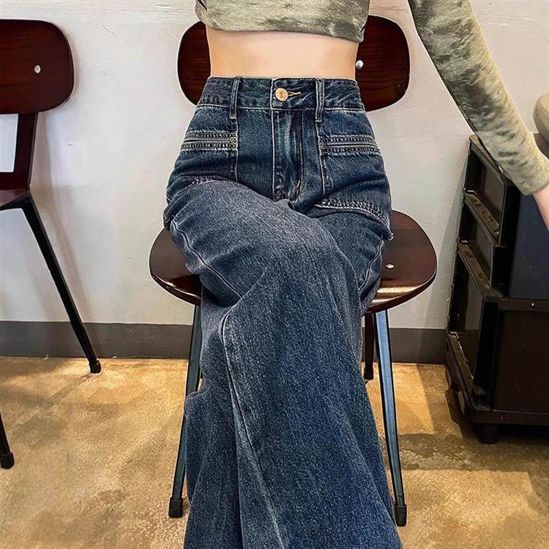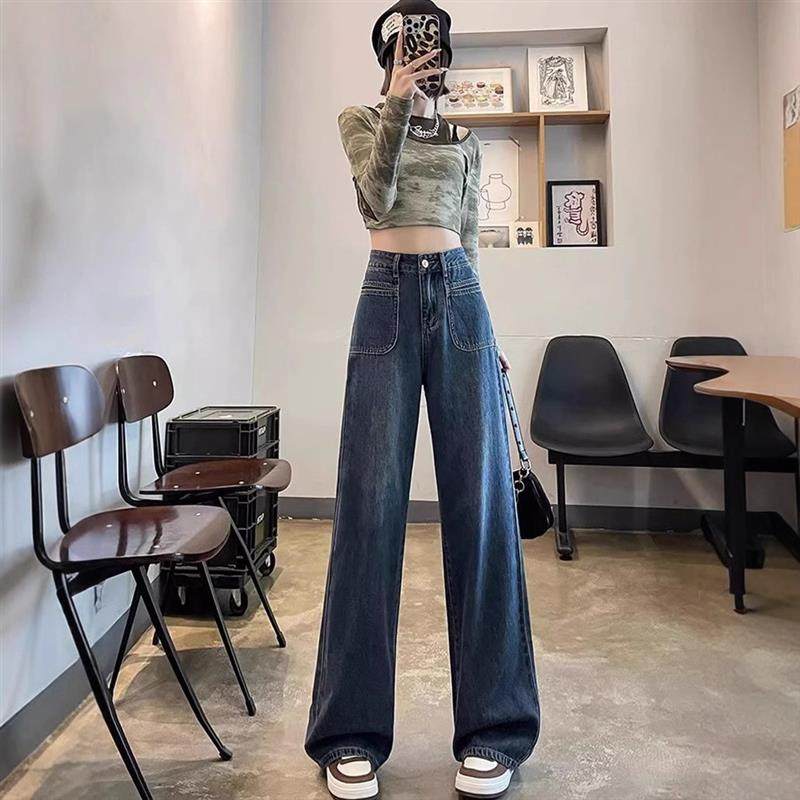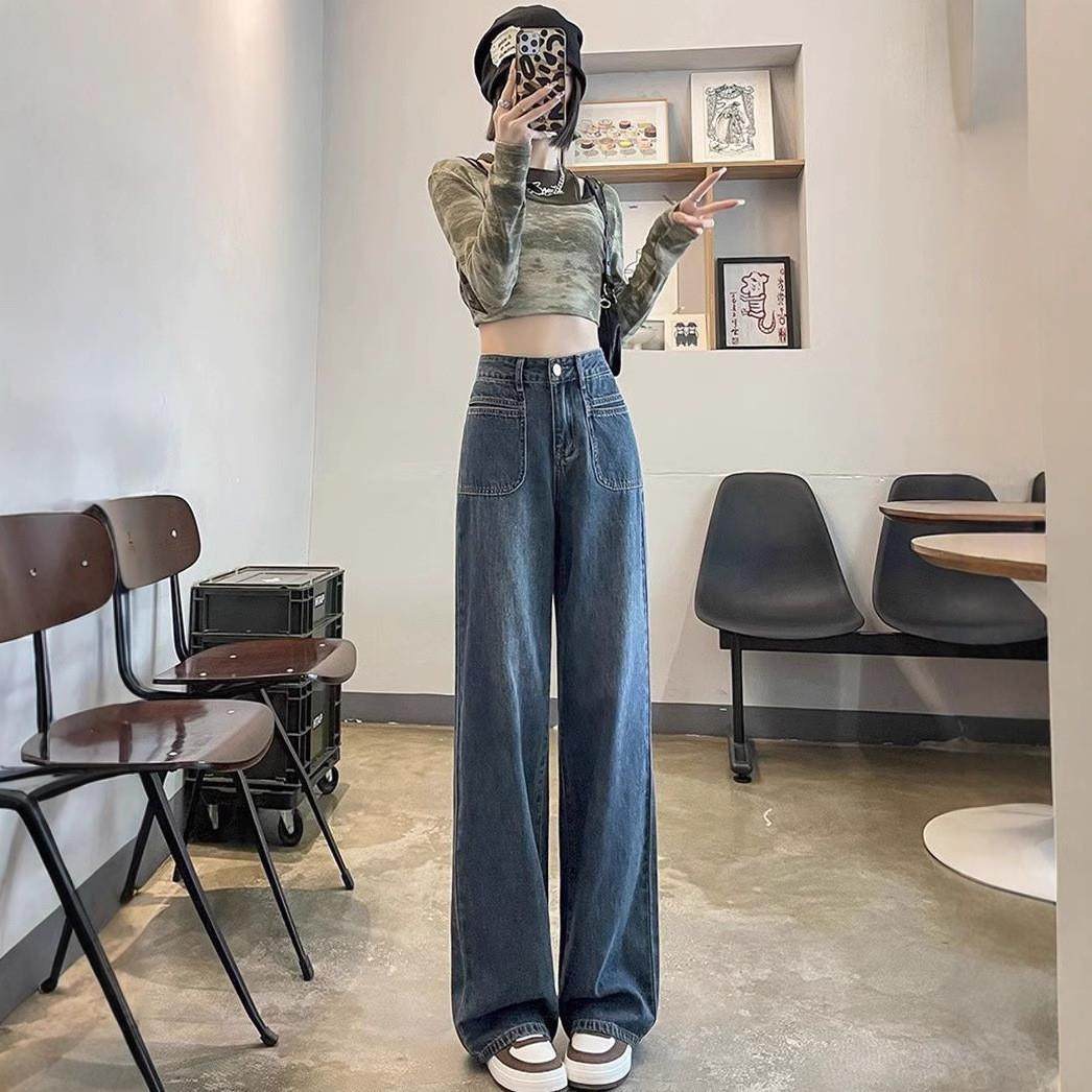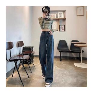 ins潮 高腰显瘦宽松百搭直筒拖地裤 高街复古阔腿牛仔裤 女春秋韩版