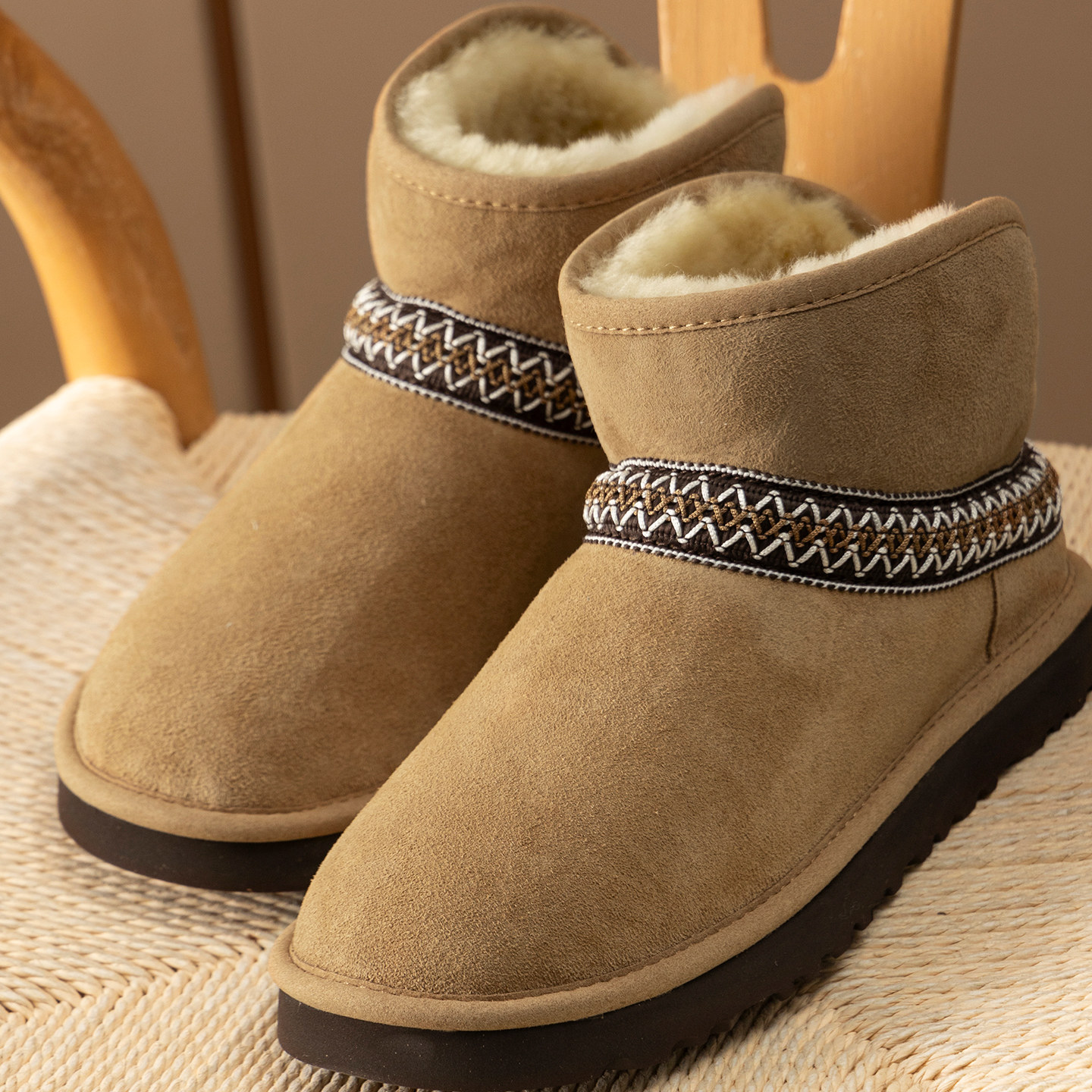 加厚加绒羊皮毛一体雪地短靴女48I0 H春上7号 经典 特 毛绒暖冬