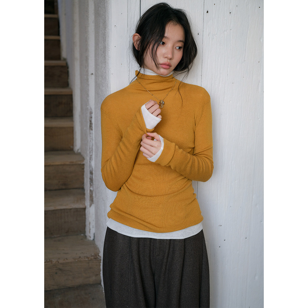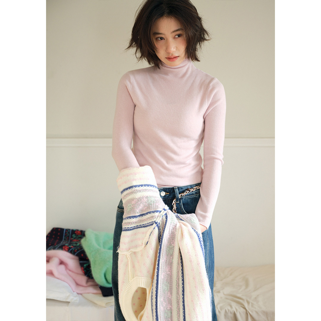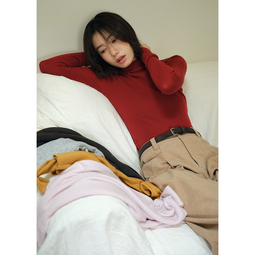 冬季 BLUEerror 女内搭圣诞红色针织衫 显瘦堆堆领针织打底衫 修身