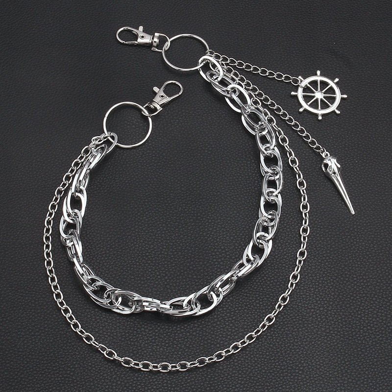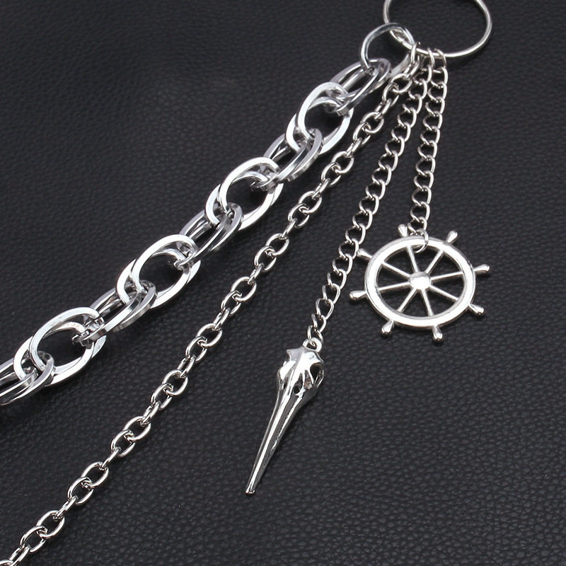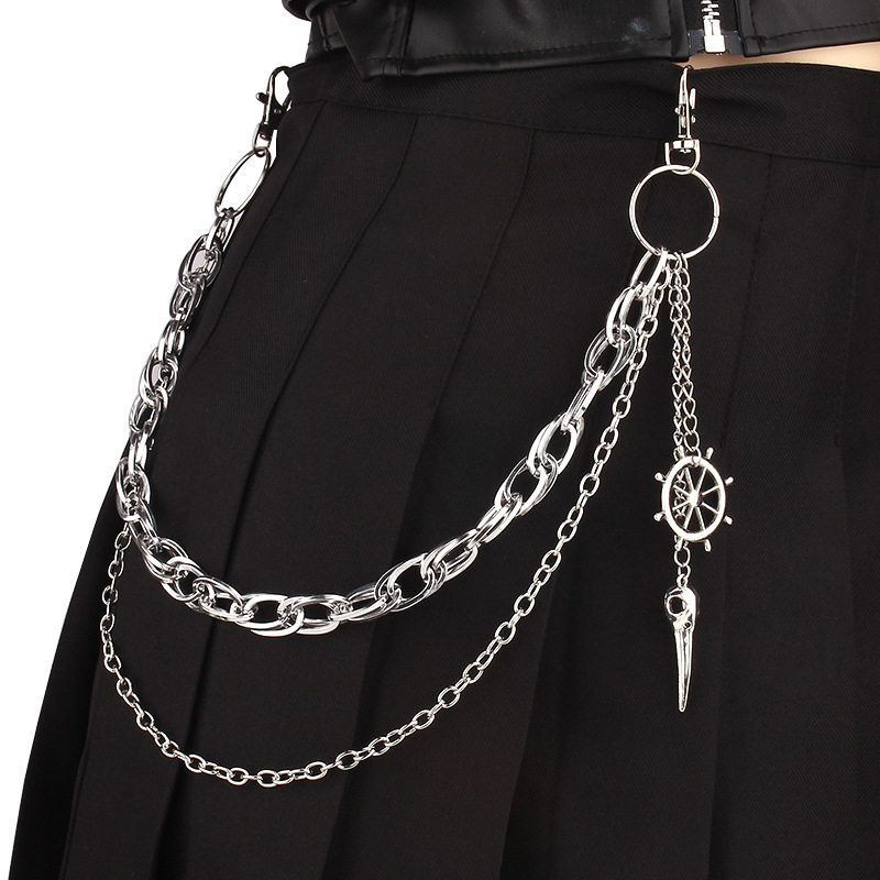 饰链 装 嘻哈双层金属裤 链女潮酷设计骷髅鸦尖嘴吊坠腰部配饰牛仔裤
