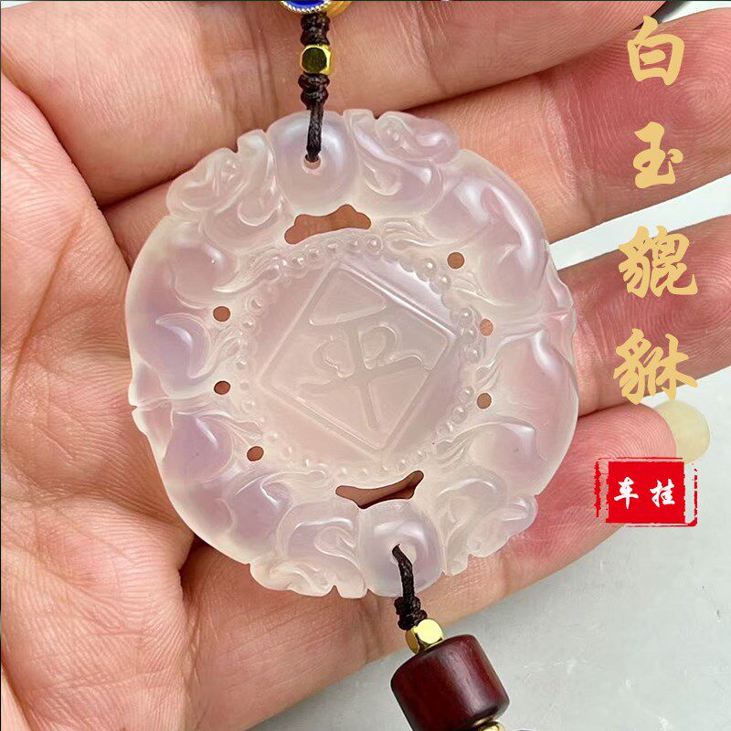 白玉髓貔貅2024新款 汽车挂件车载后视镜吊坠出入平安扣高档男女款