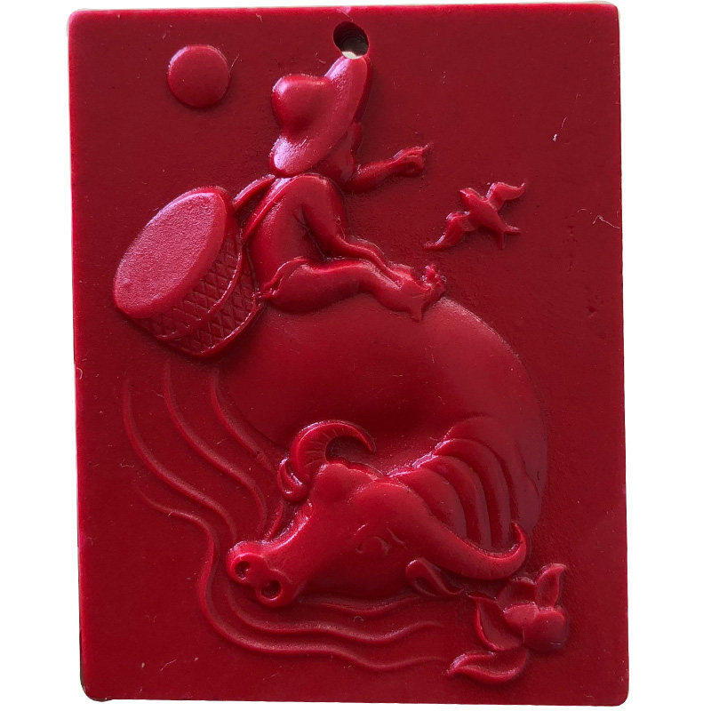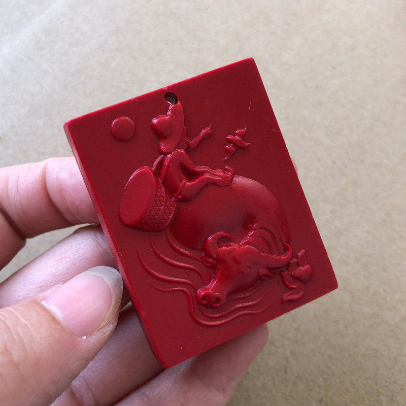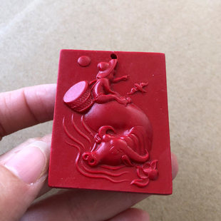 天然朱砂悠然自得平安牌牧童放牛回归自然吊坠旺土命聚财佩戴风水