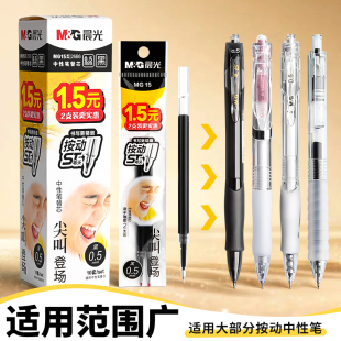晨光ST笔芯按动笔笔芯官方旗舰店黑色0.5mm中性笔芯st头速干中性笔芯黑笔替芯签字笔替换笔芯圆珠笔g 5笔芯