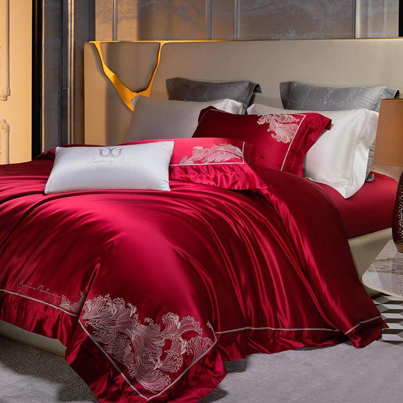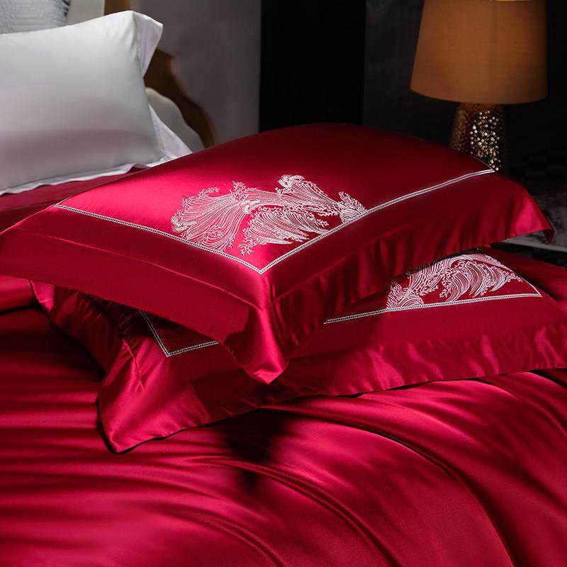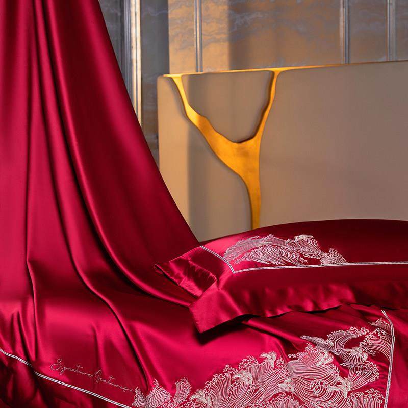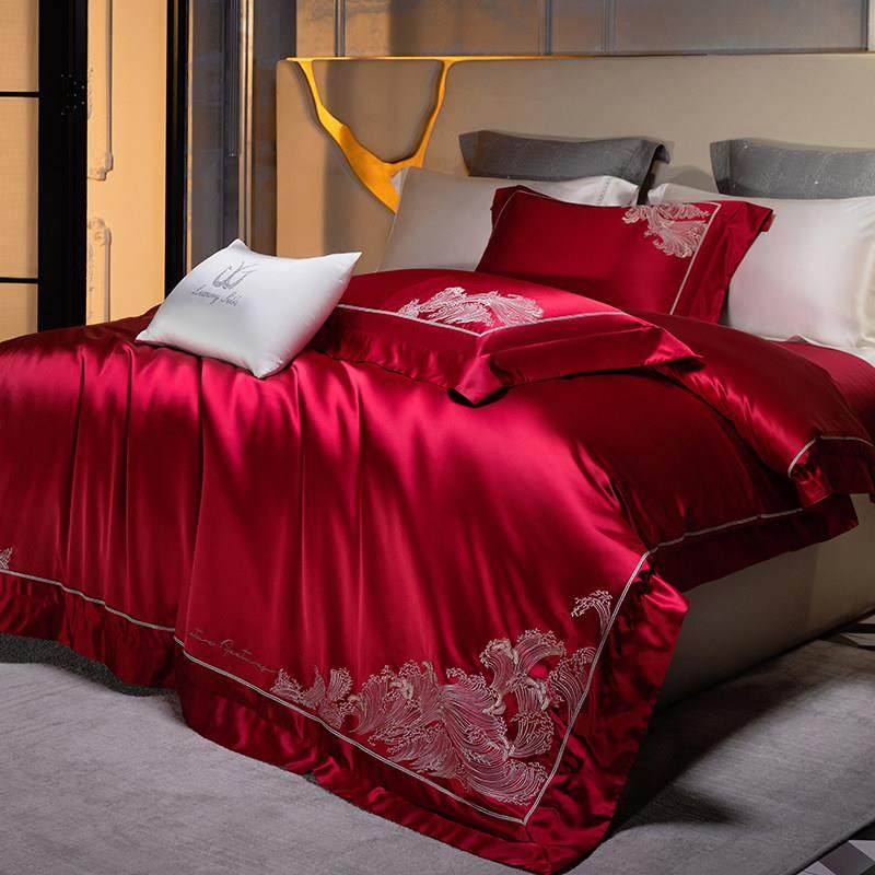 高端奢华真丝棉床上用品四件套高档婚庆刺绣被套床单结婚陪嫁套件