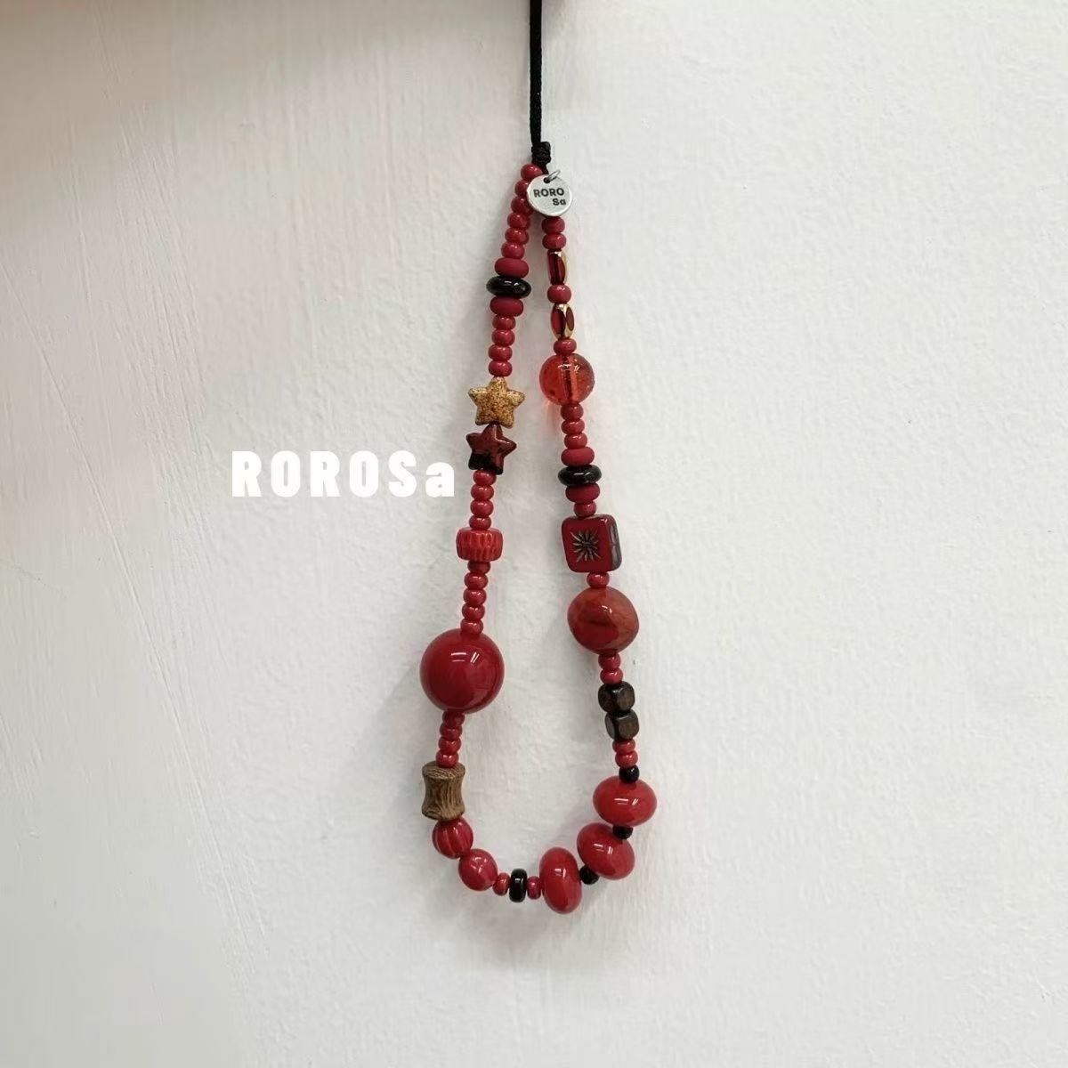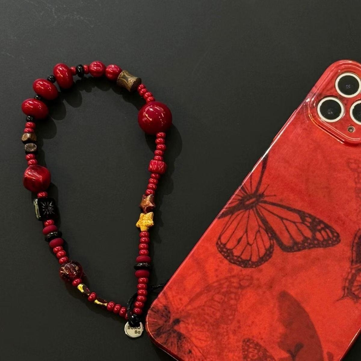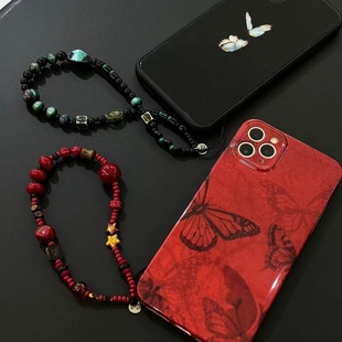 手机链蓝色星星手机壳挂绳简约ccd相机挂绳配饰串珠挂件饰品链条