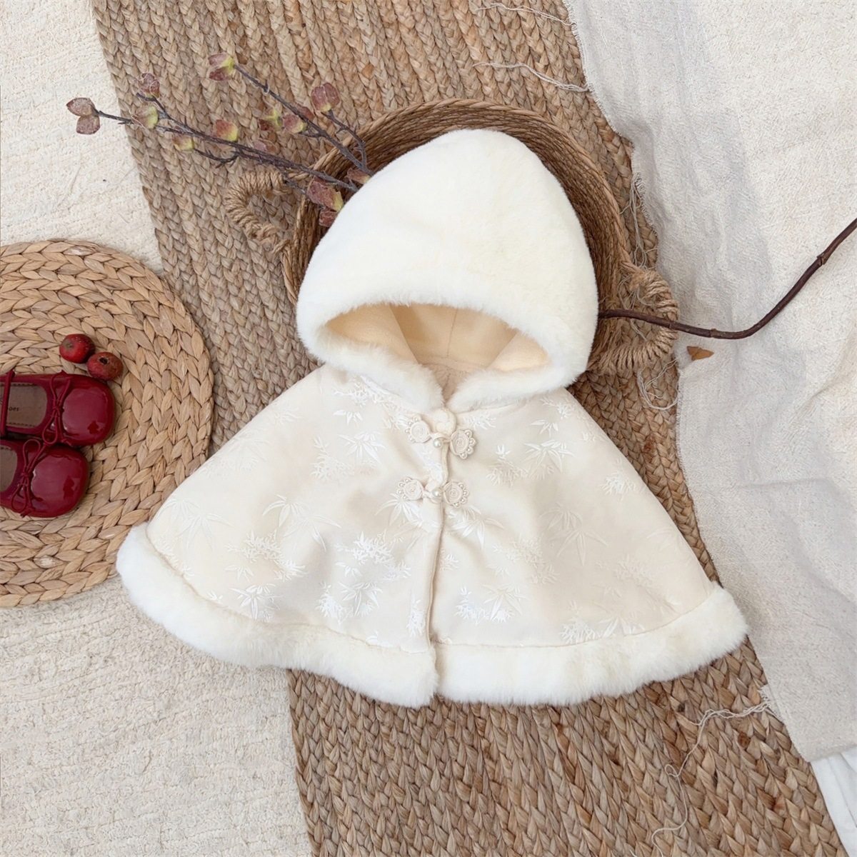 清冷感白色羊毛披肩女外搭2025新款 高级感纯色流苏斗篷披风围巾女