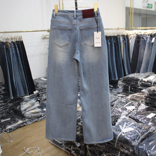 保暖长裤 艾拿28616 女装 2025年冬季 1浅蓝色植厚绒宽松直筒牛仔裤