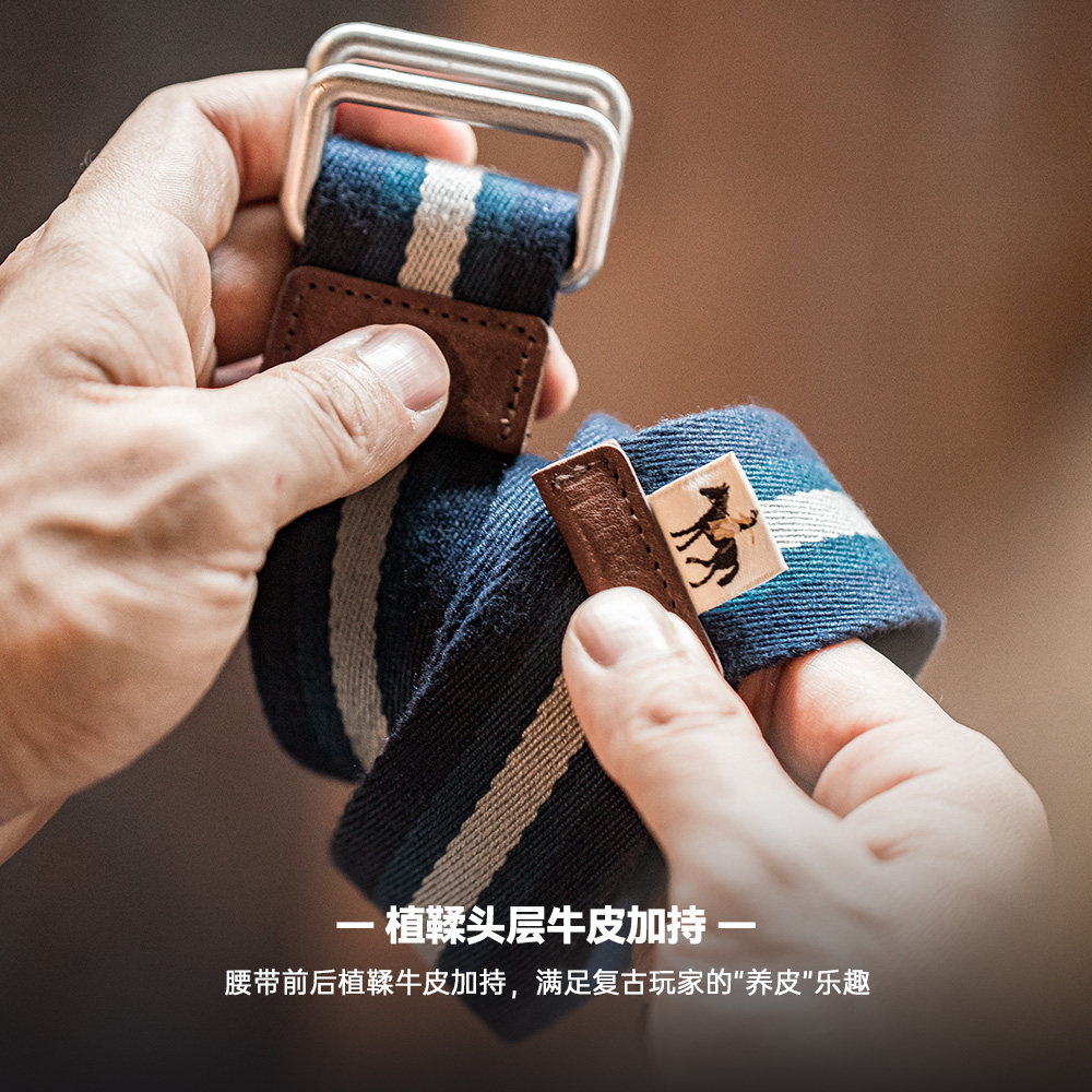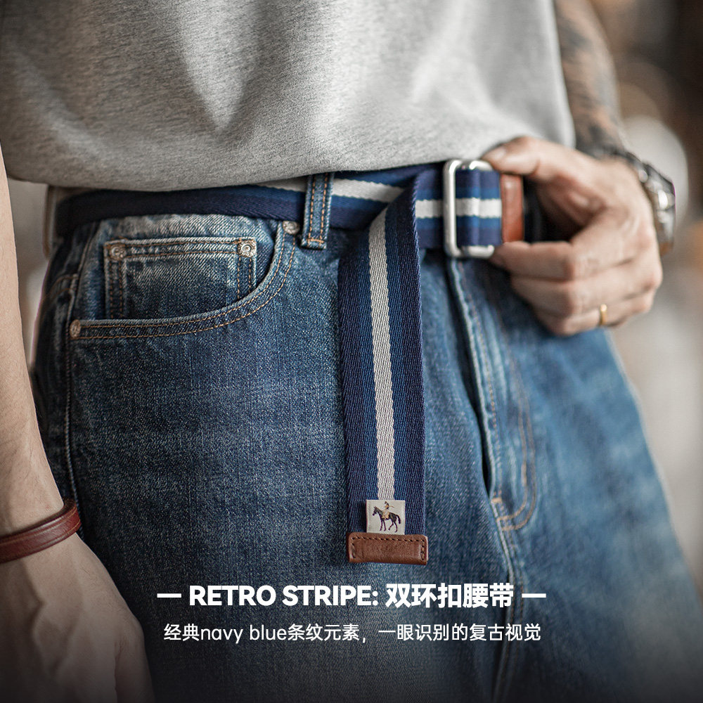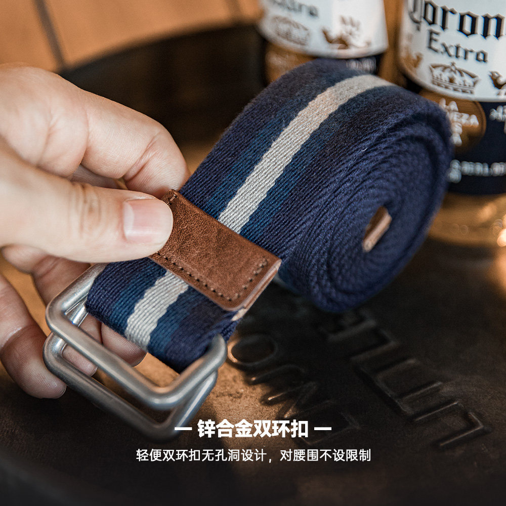 马登工装 带男 复古双环扣条纹腰带学院风免打孔松紧编织帆布配饰裤