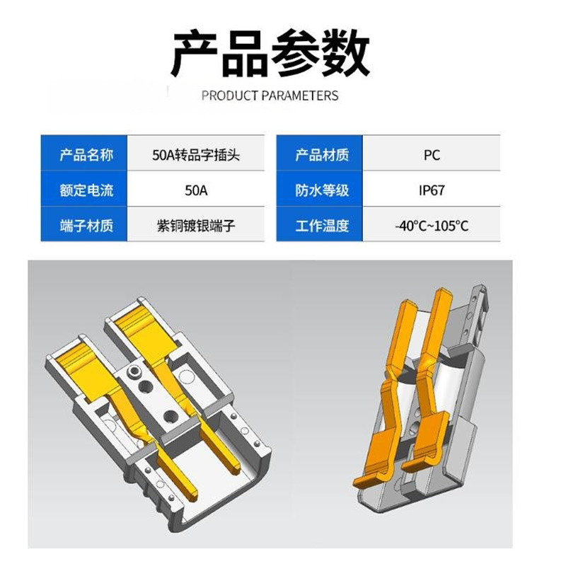 适用安德森插头带线车充电50锂电池电源120A大电流连接器对接线束