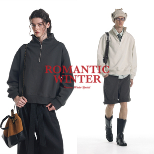 纯棉美式 条纹polo领半拉链卫衣女秋冬加绒加厚宽松设计感小众上衣