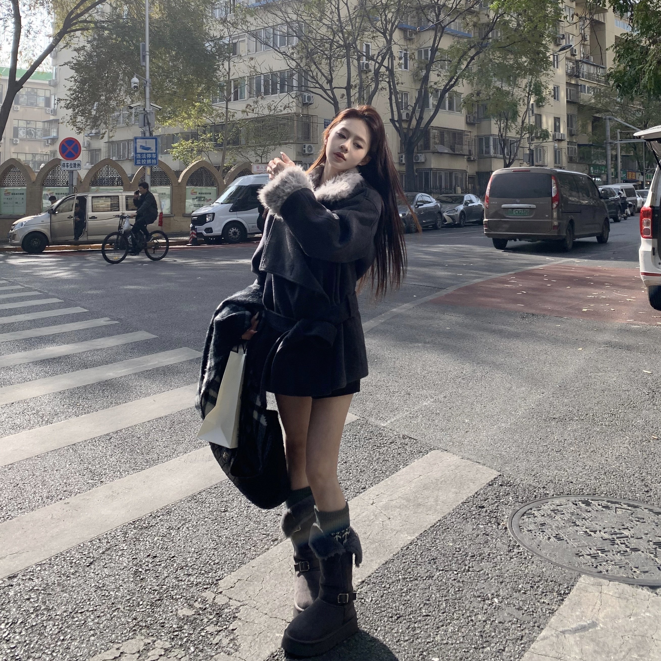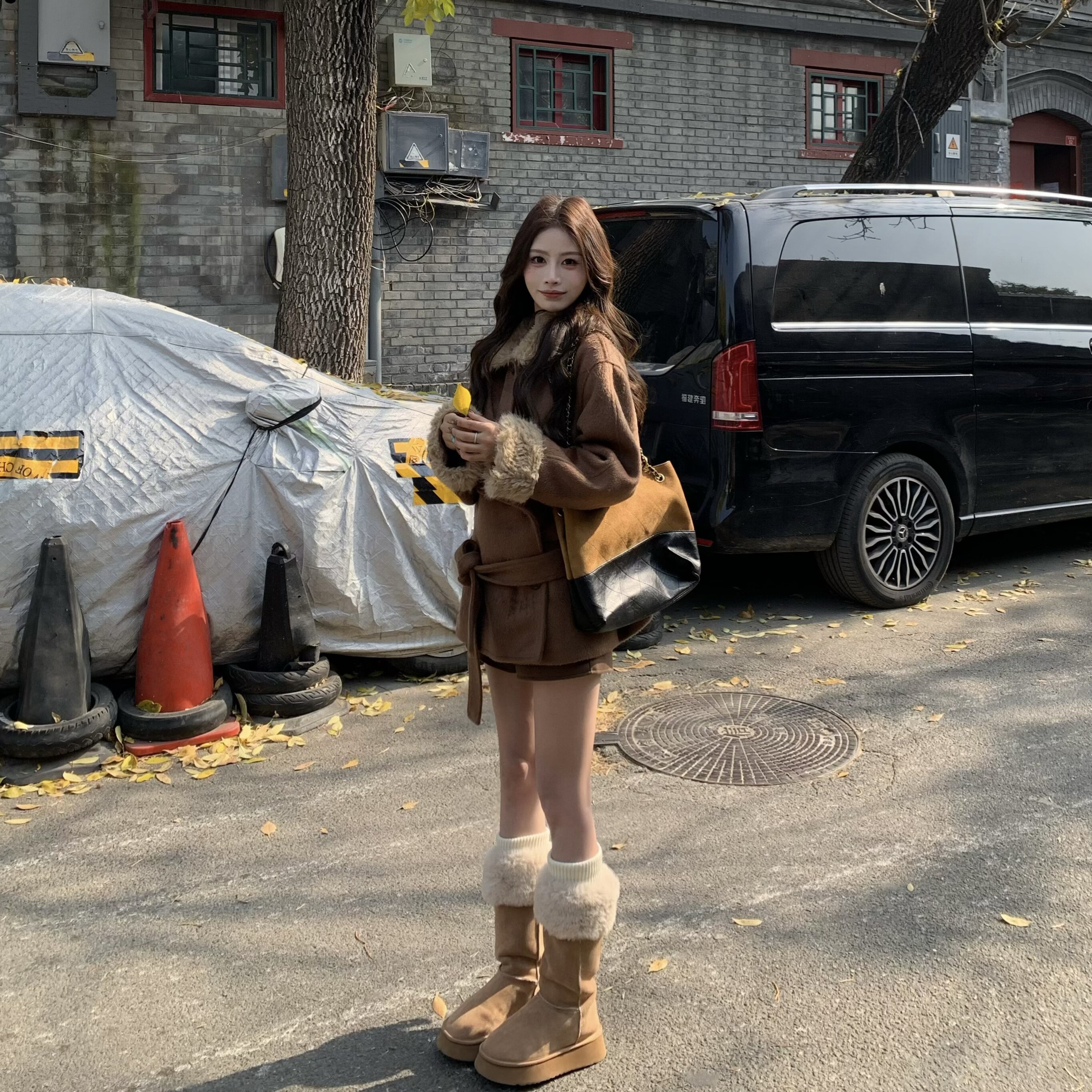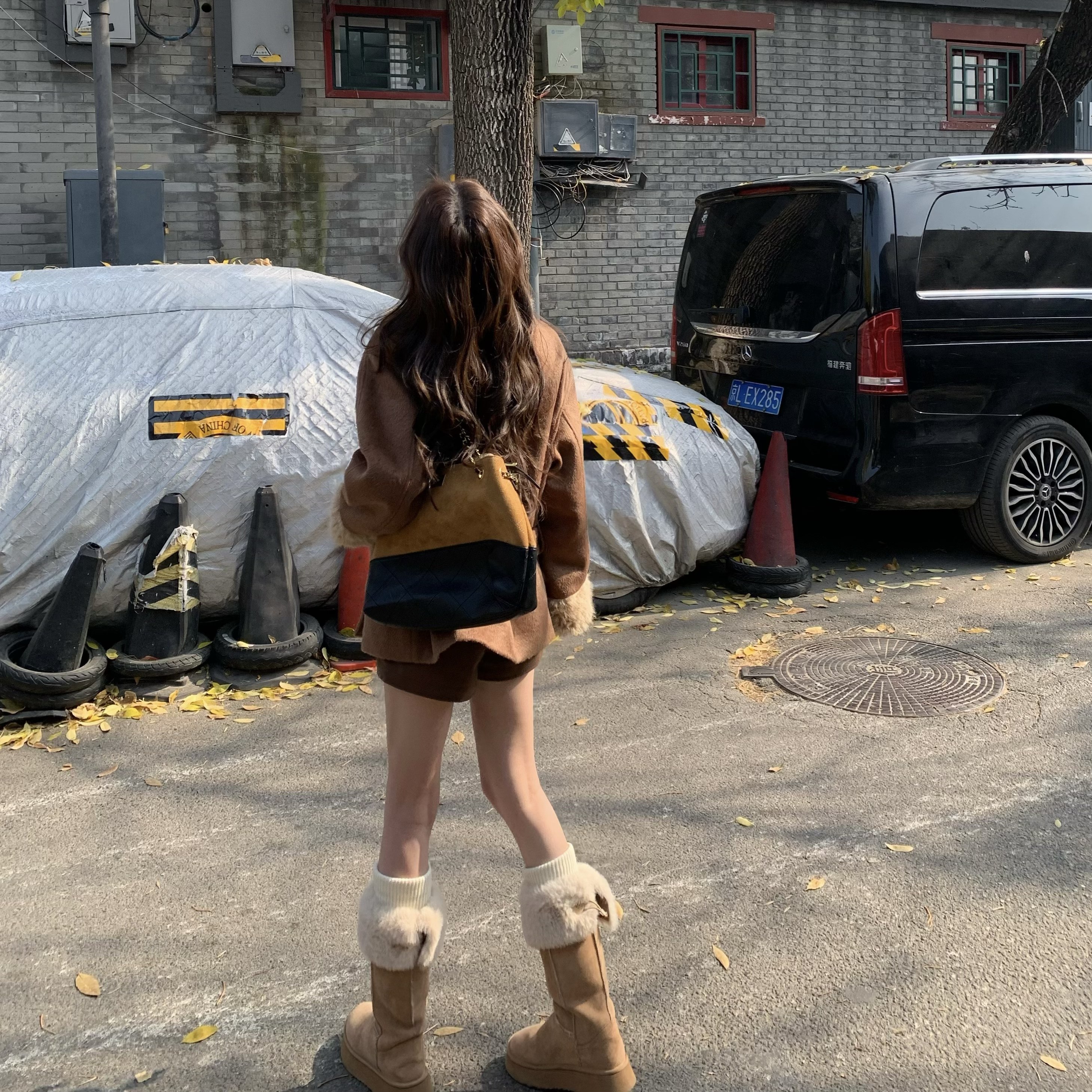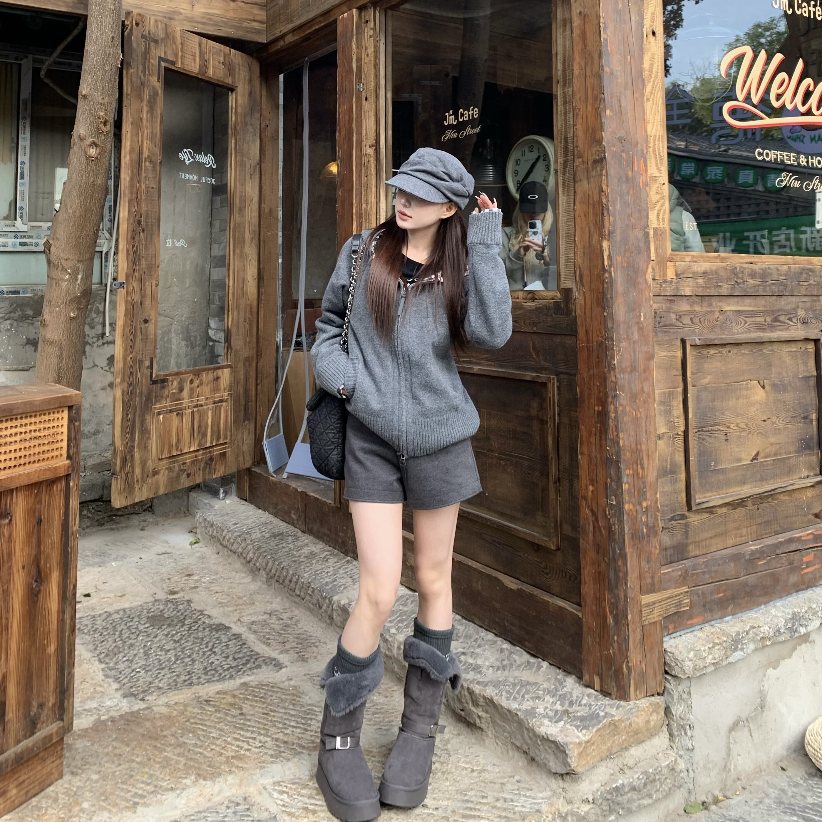 百搭裤 女秋冬高腰A字短裤 子 韩系复古咖色毛呢休闲裤 3MER哦哦三妹
