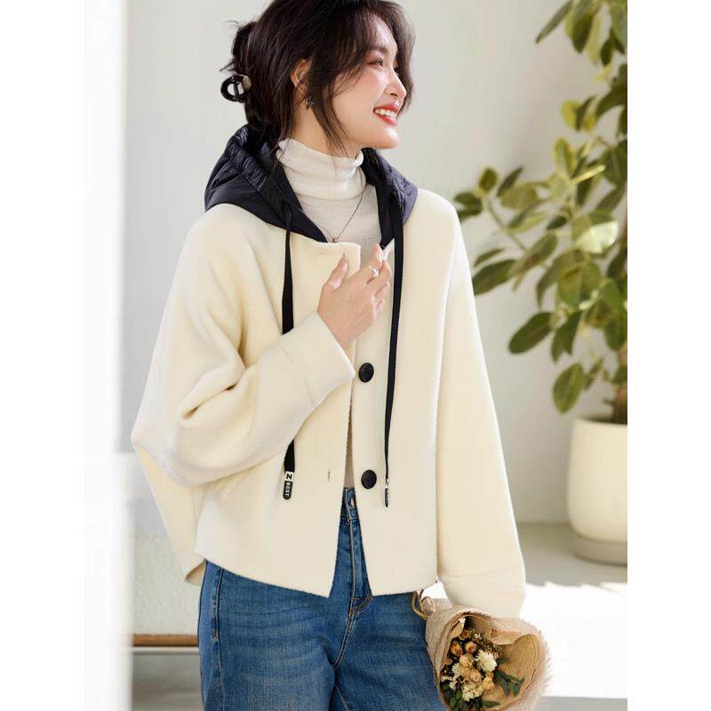 复古上衣女装 2026春冬新款 小个子连帽针织短外套加厚休闲宽松长袖