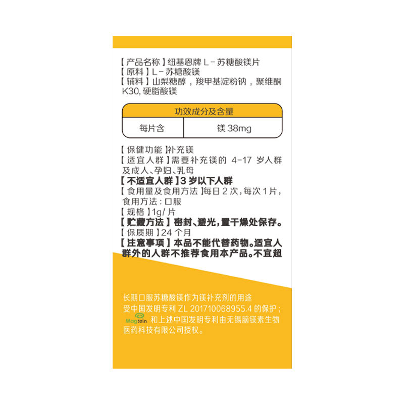 1gx40 21金维他纽基恩牌L 苏糖酸镁片40g