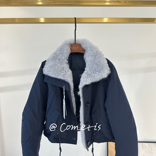 实拍现货订染雾灰蓝调可拆卸小山羊绒皮草领90白鹅绒派克羽绒服