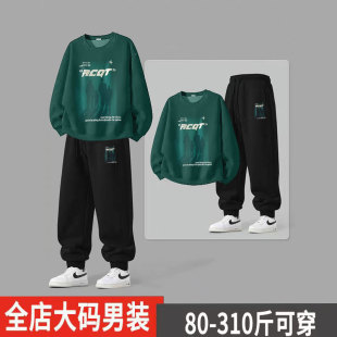 男生酷帅穿搭学生休闲运动套装 秋季 纯棉卫衣男2025新款 加肥加大码
