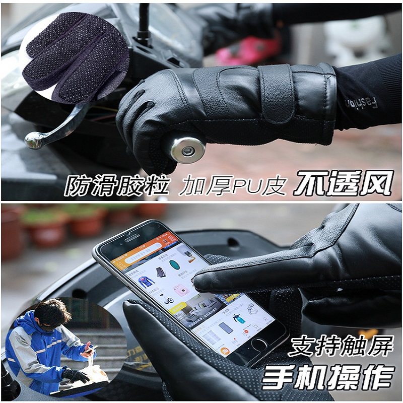 冬季 户外电动车手套防滑骑行专用手套 防风防水加绒保暖触屏秋冬季