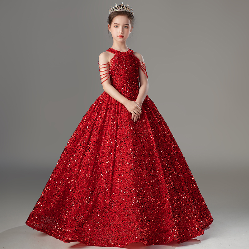 儿童礼服高端女童生日公主裙小主持人钢琴演出服模特走秀服装 红色