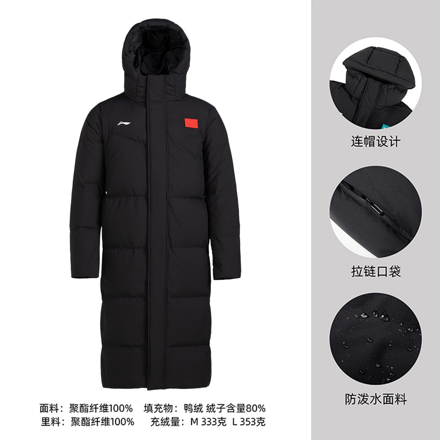 羽绒服 加厚长款 连帽保暖防风 正品 AYMV755 李宁冬季 运动外套 男款