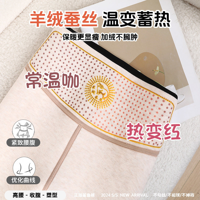子保暖棉裤 高腰加绒加厚裤 女外穿秋冬新款 羊绒蚕丝温变鲨鱼打底裤