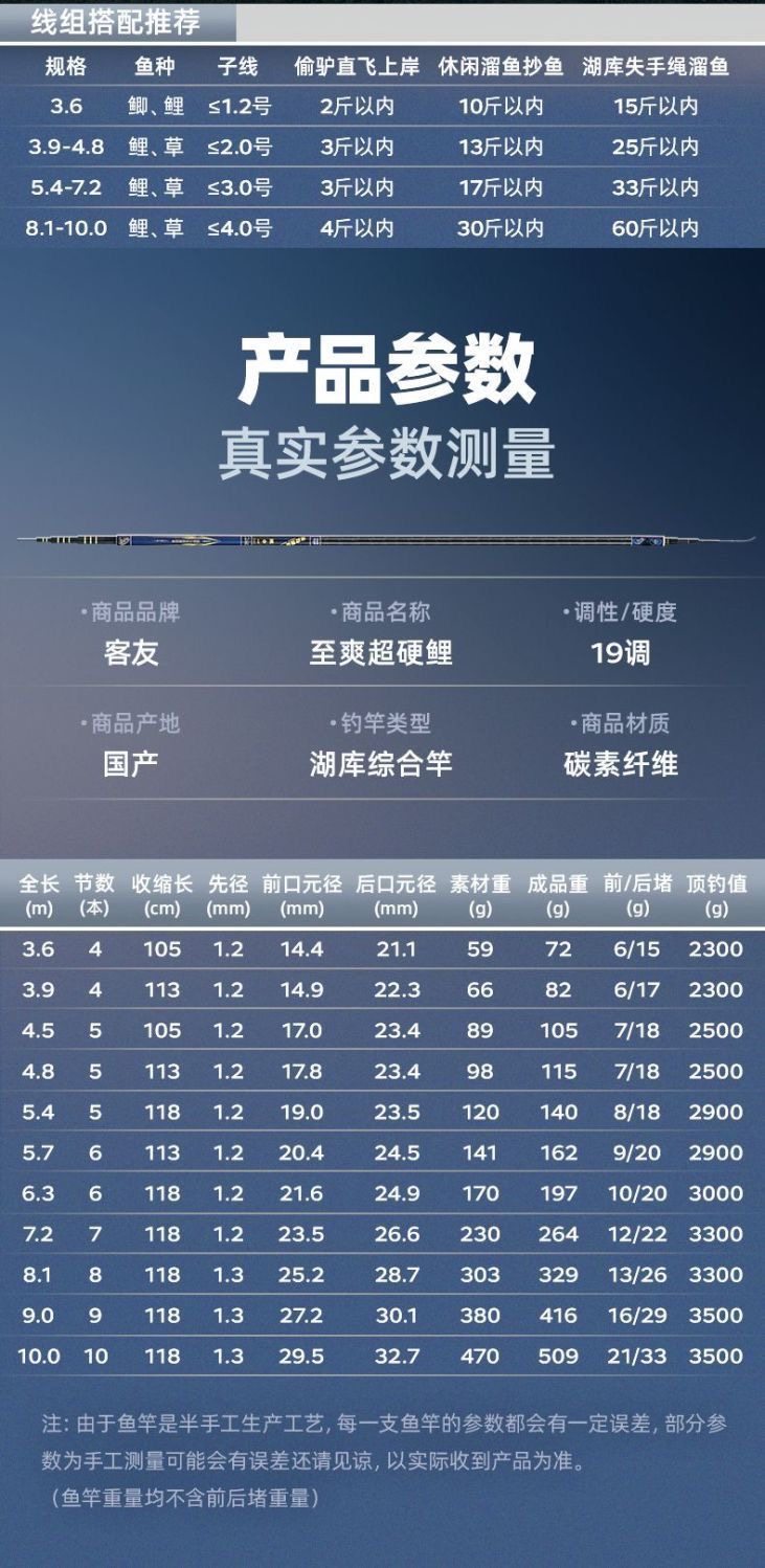 客友至爽超硬鲤19调5H超轻高碳竞技黑坑鲫鲤综合休闲野钓台钓手竿
