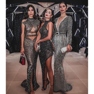 烫金流苏连衣裙婚纱 礼服独立站亚马逊长袖 新款 2020冬欧美外贸女装