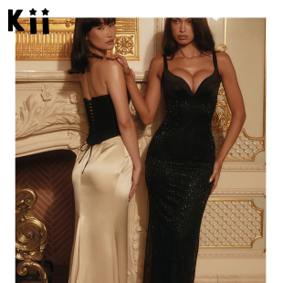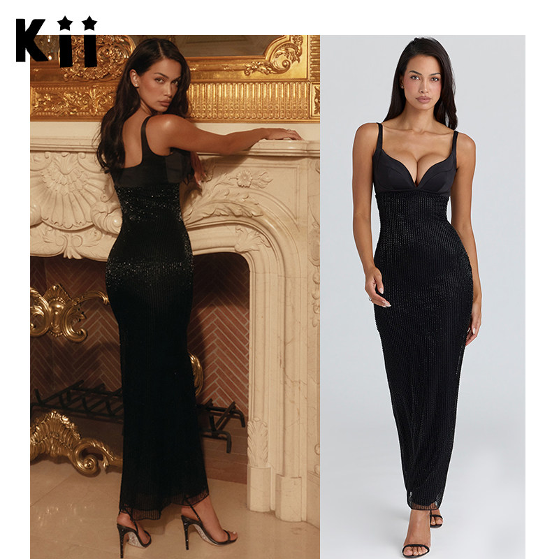 黑色手工珠绣超长礼服长裙 CB限量版 Ari Houseof Kii美国在途正品