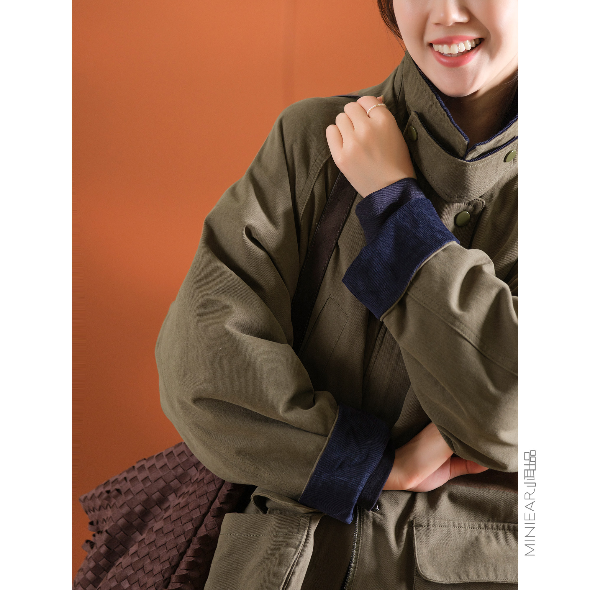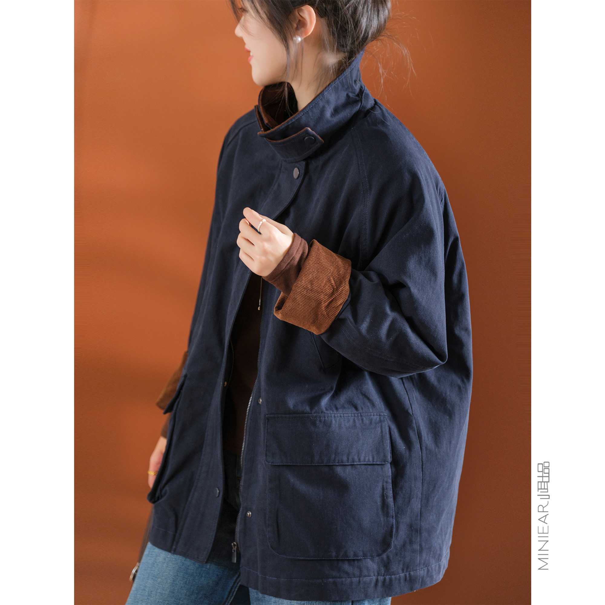 慵懒风派克服棉服 藏青色复古加厚夹棉连帽外套女胖mm美式 大码 女装
