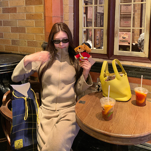 女秋冬加厚德绒立领外套休闲裤 羊毛运动套装 懒人套装 tingtings